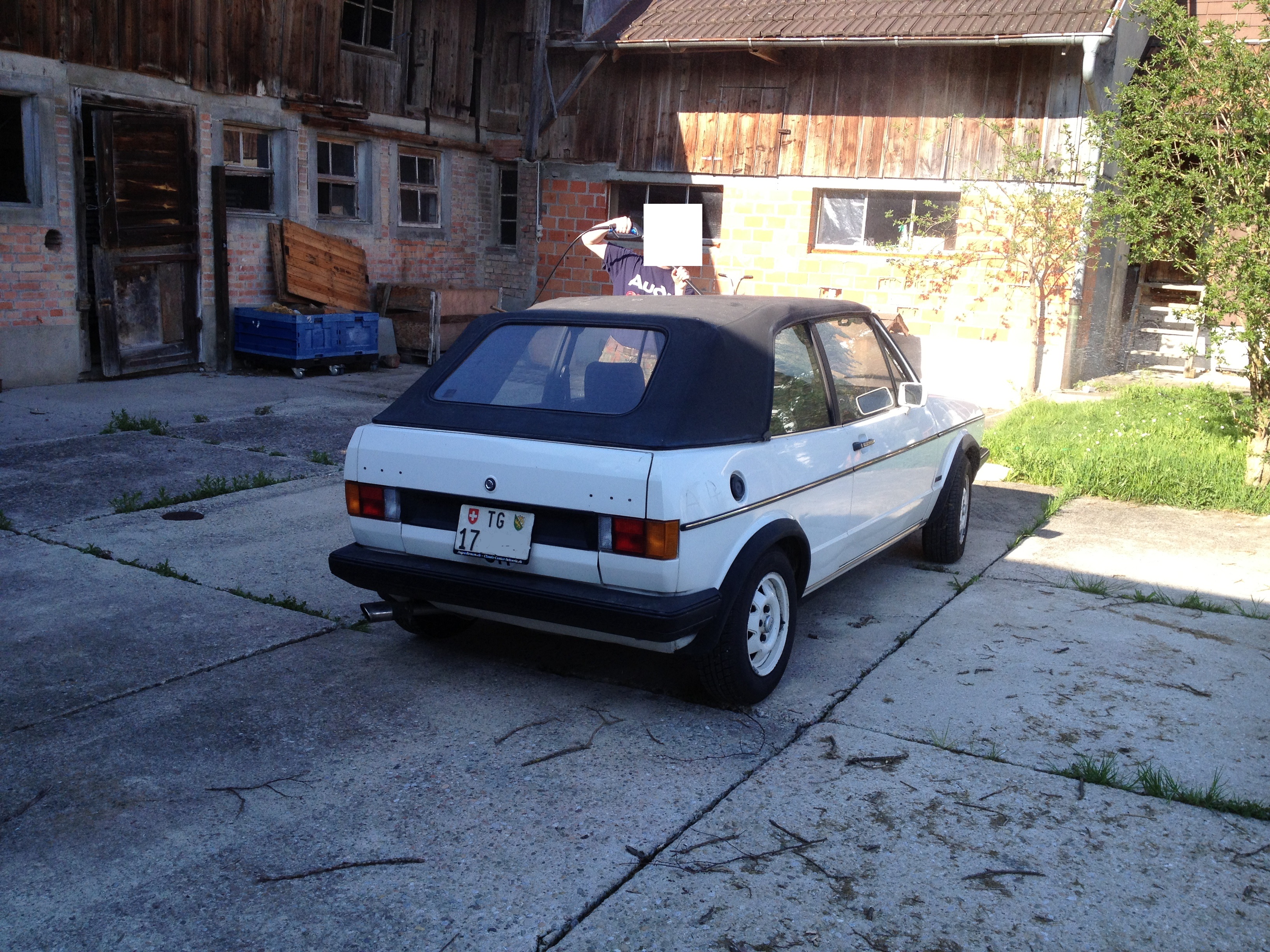 Links haben wir ein Golf I Cabriolet, auch Erdbeerkörbchen genannt. (naheliegend oder?) Er kommt noch recht ursprünglich daher, ohne grosse, lackierte Stosstangen. Ihm reicht ein 1.5 Liter Vergaser mit 70PS.