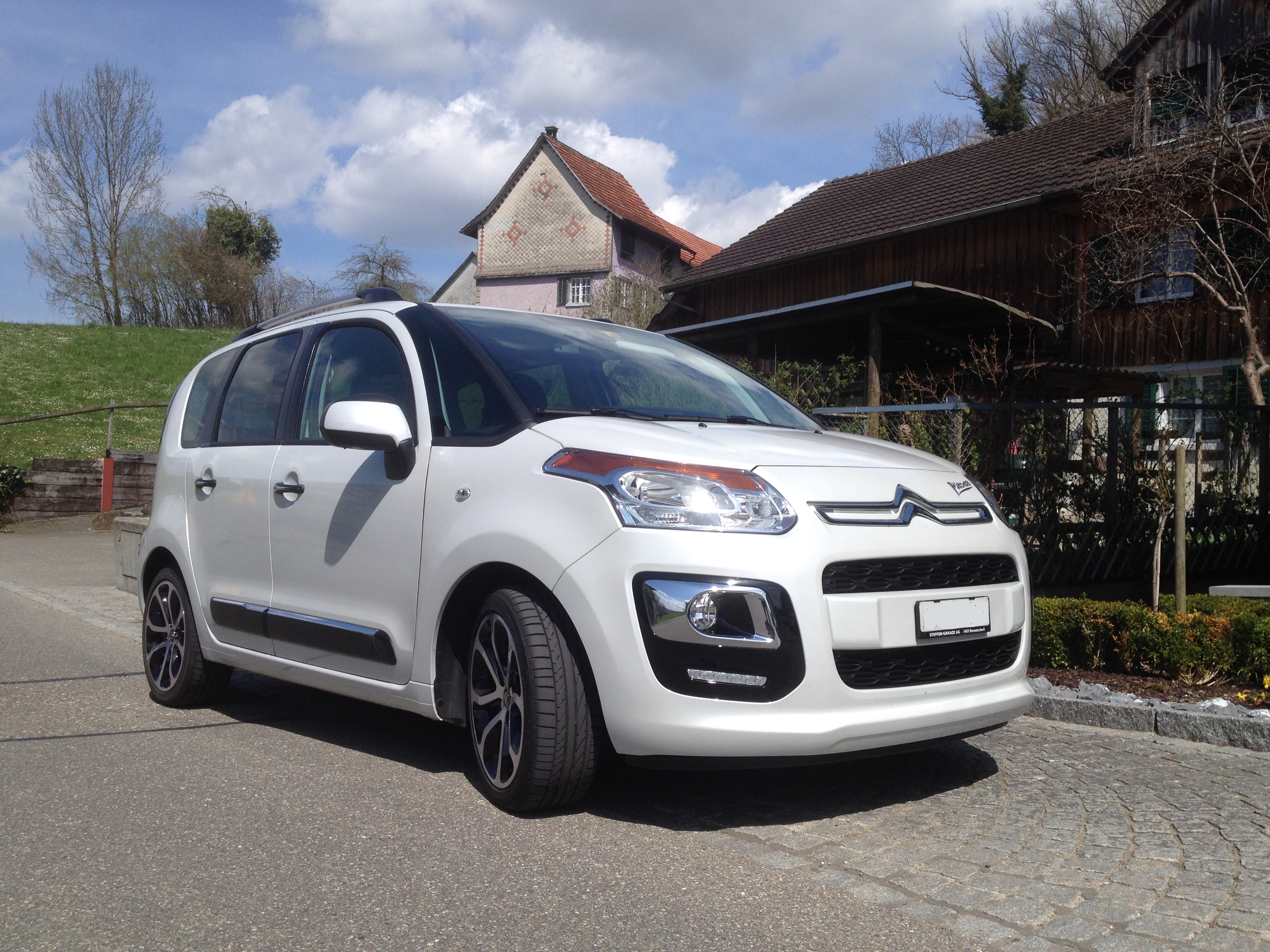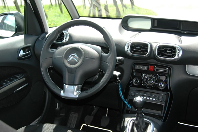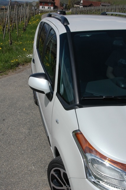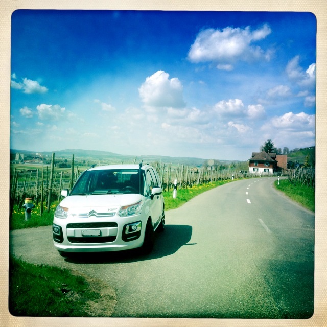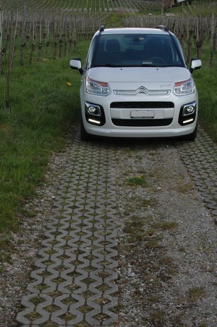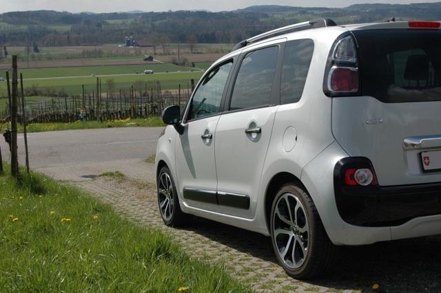Mit vollen Namen heisst der Wagen Citroën C3 Picasso Exclusive HDi 115, ist in weiss brilliant lackiert und leistet 114 PS und 270Nm bei bereits 1750 U/min. Das macht ihn zwar nicht zu einem Rennwagen, aber aufgrund des moderaten Gewichts und der kurzen Aussenabmessungen zu einem für Vanverhältnisse zügig zu fahrenden Auto. Für die grossen oder kleinen Mitreisenden bietet die moderne Kreuzung zwischen einem 2CV und einem CX noch folgendes: