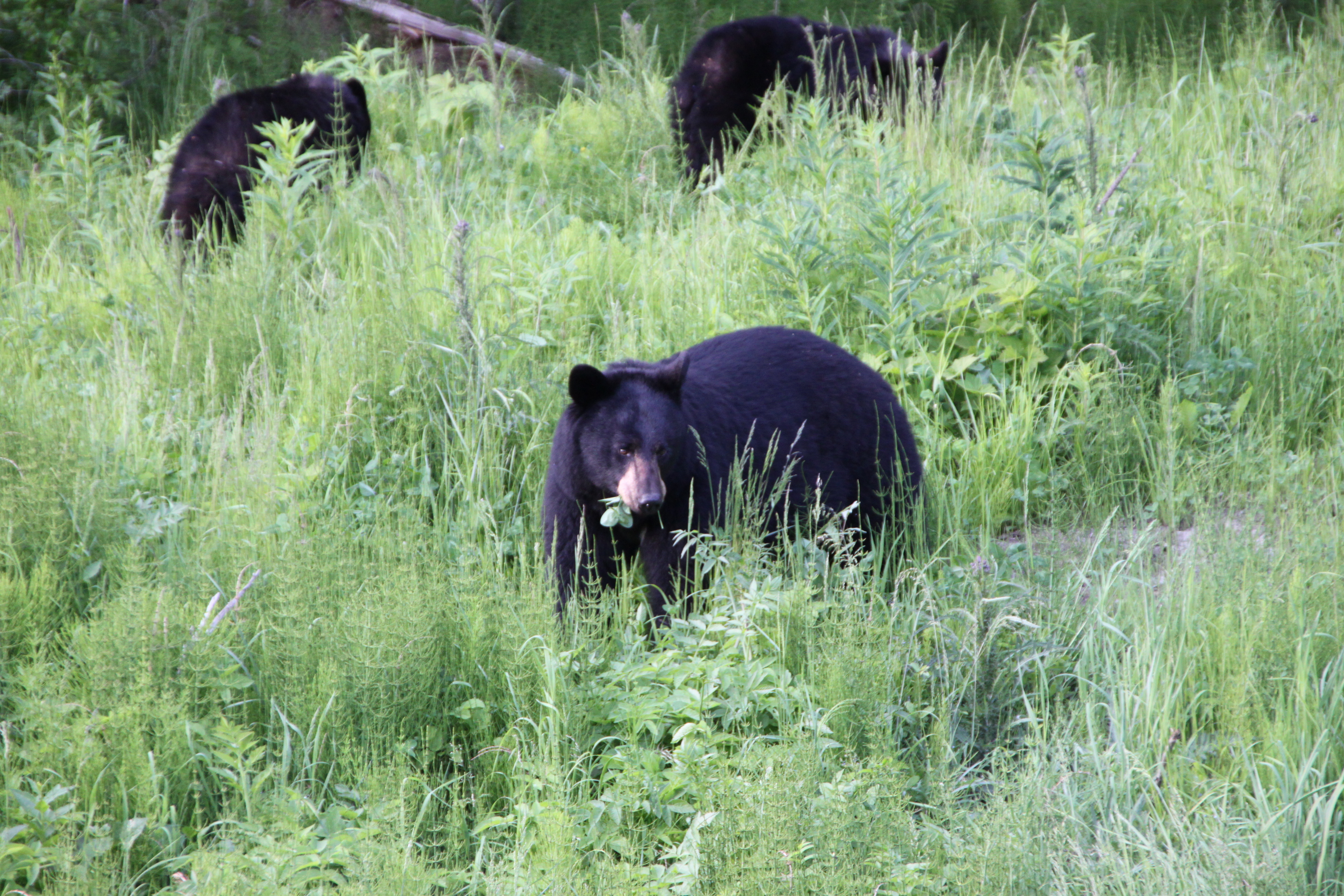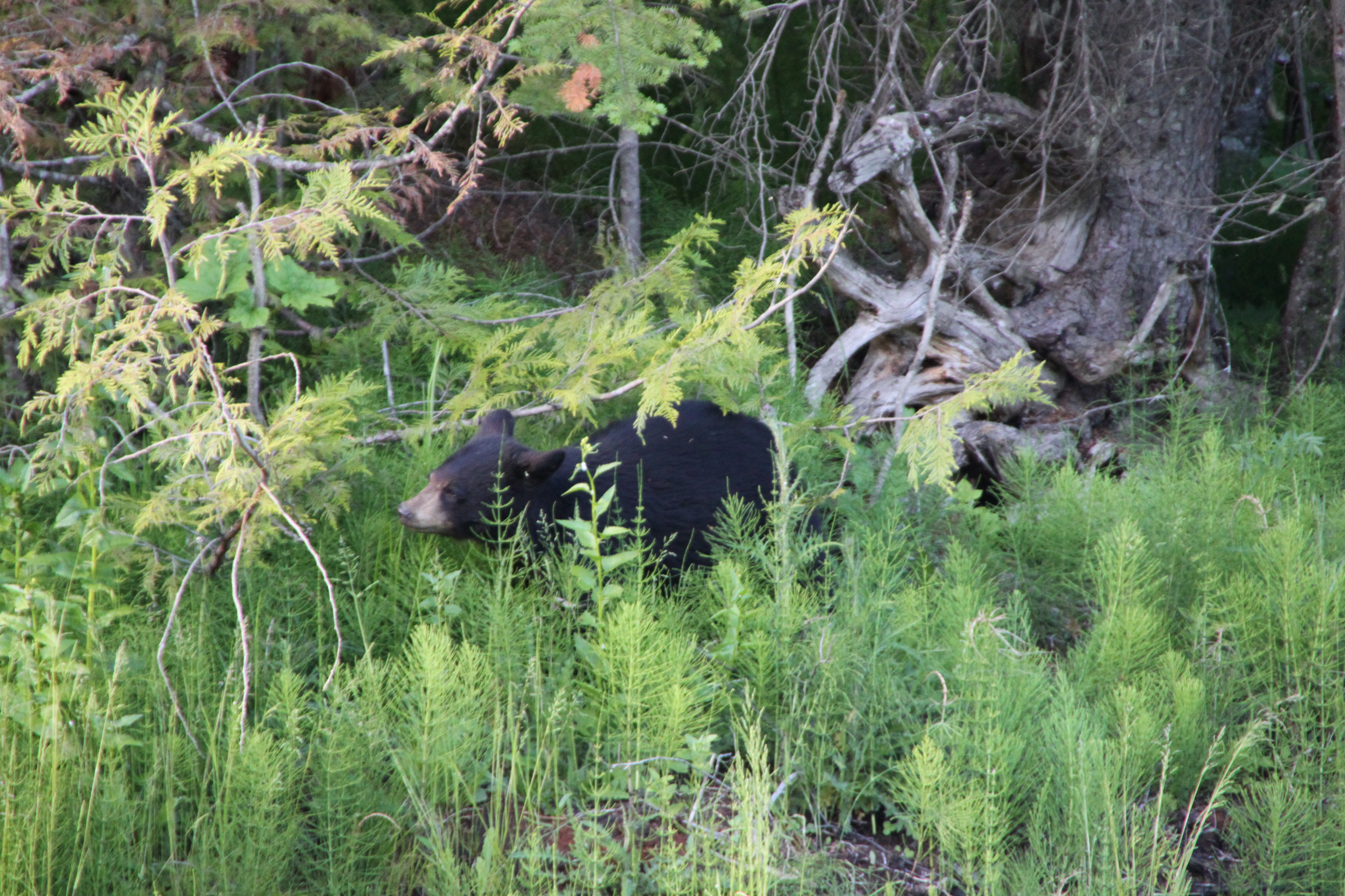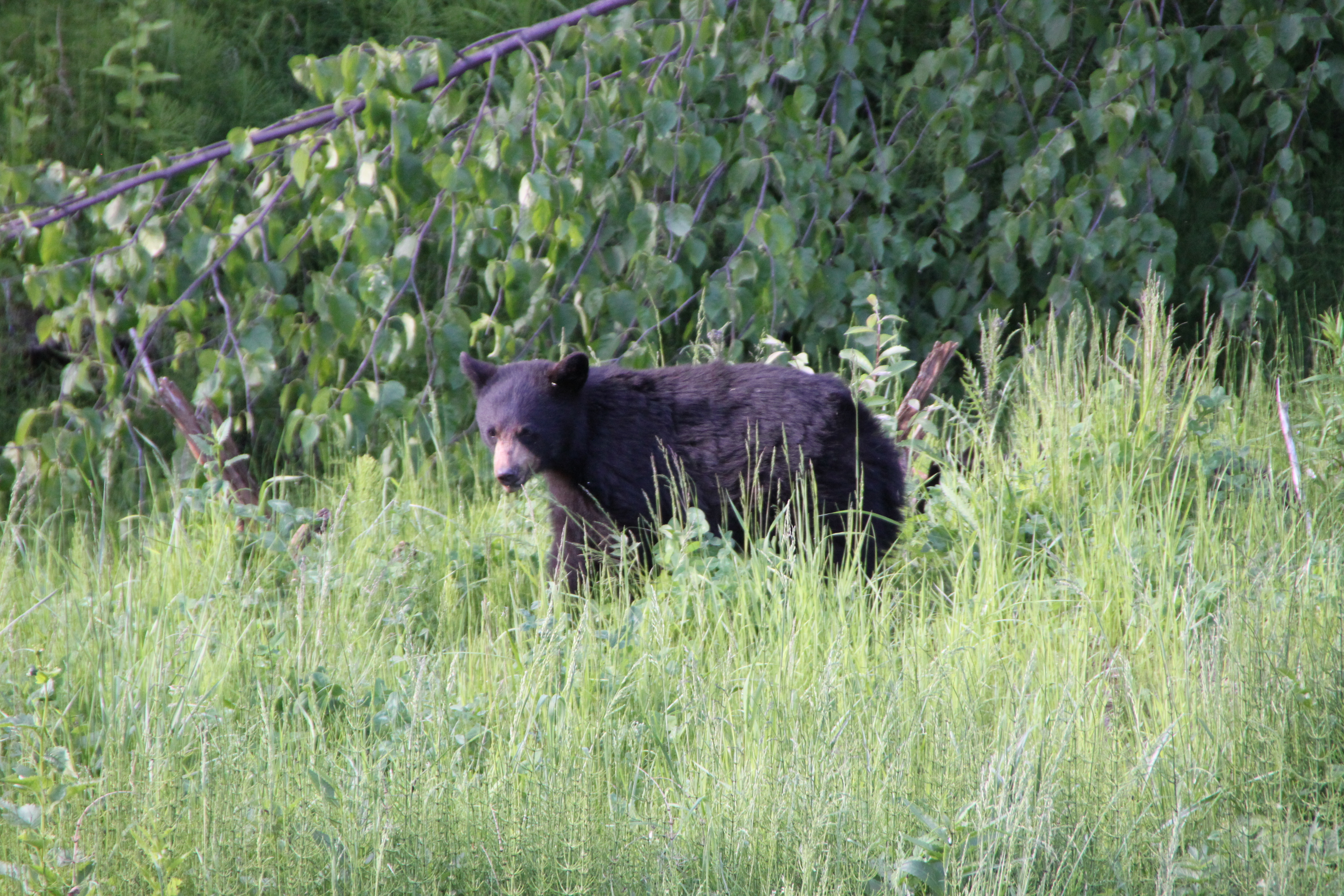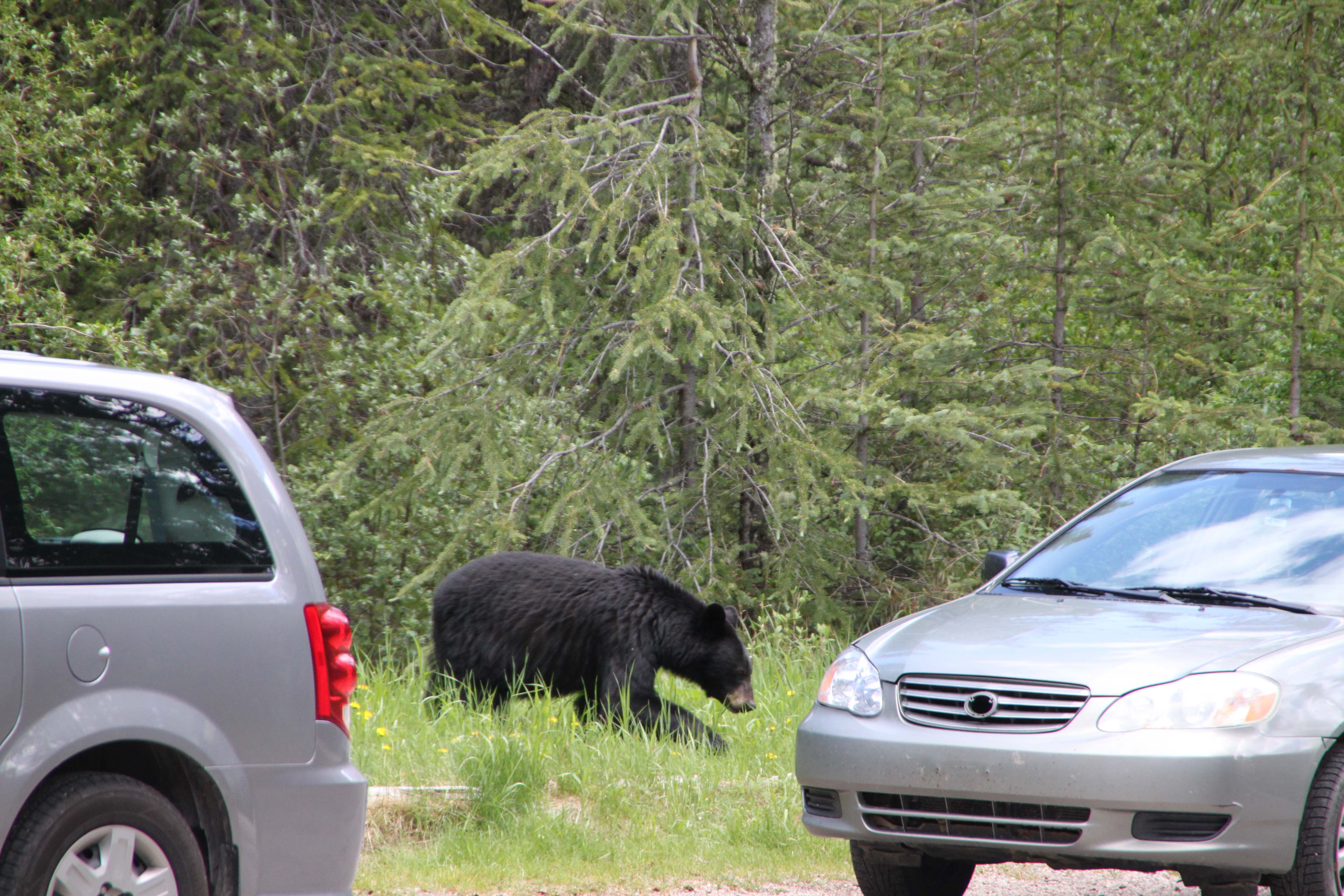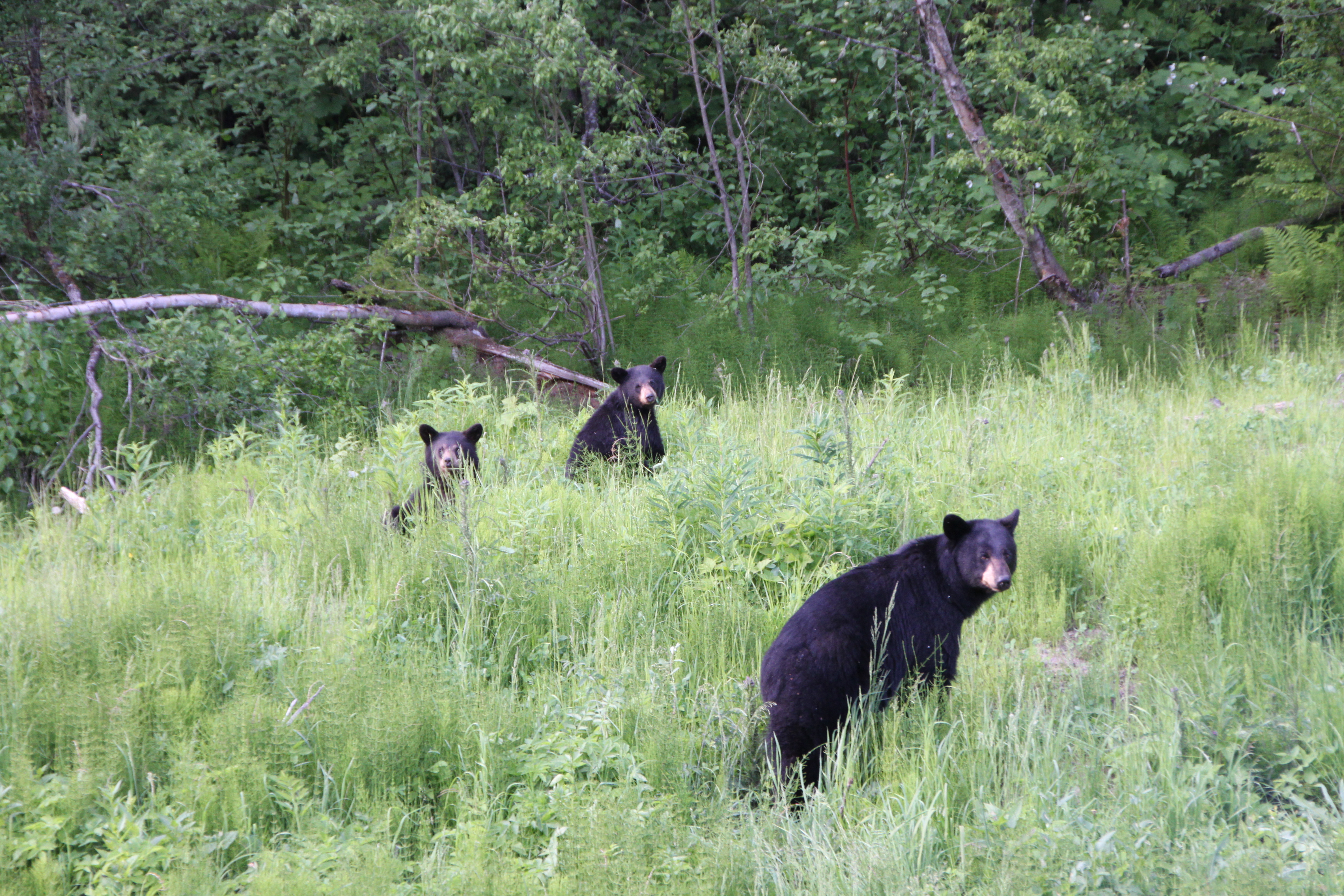 Diese Bärenfamilie entdecken wir auf einer späteren Fahrt kurz vor dem Eindunkeln, Mama beobachtet uns genau und wir photographieren aus der Schiebedachluke 🙂