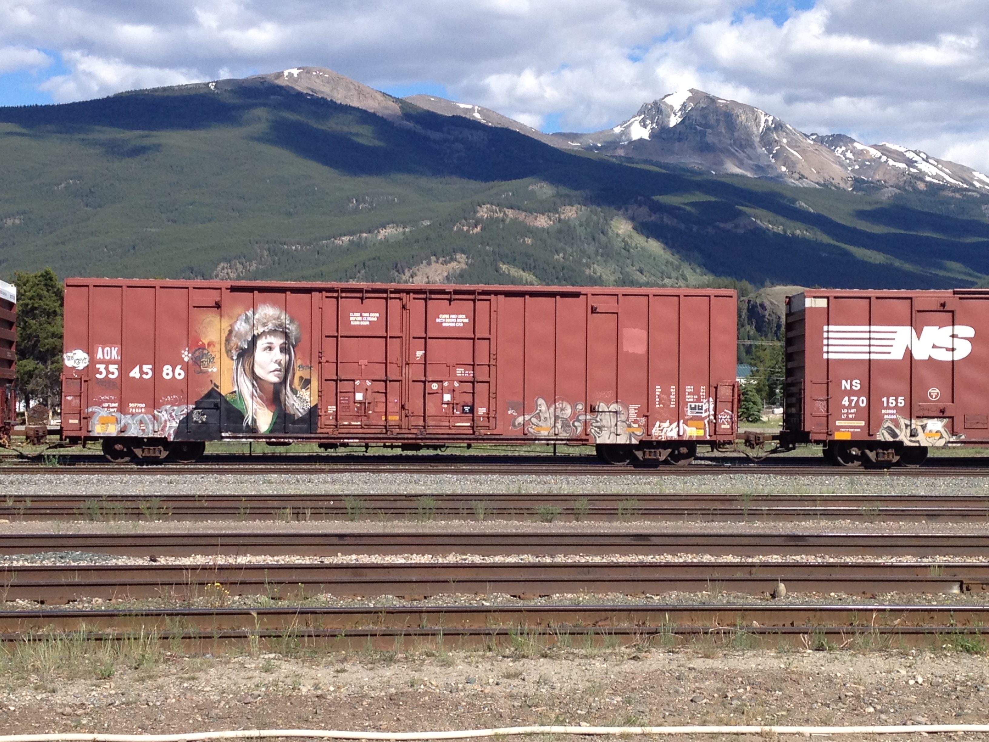 Wieso können unsere Schmierer nicht so schön sprayen? Gesichtet haben wir diesen Bahnwagen in Jasper Station. Nach diesem letzten Besuch mit einem Pontiac-Sighting geht es weiter Richtung Vancouver.