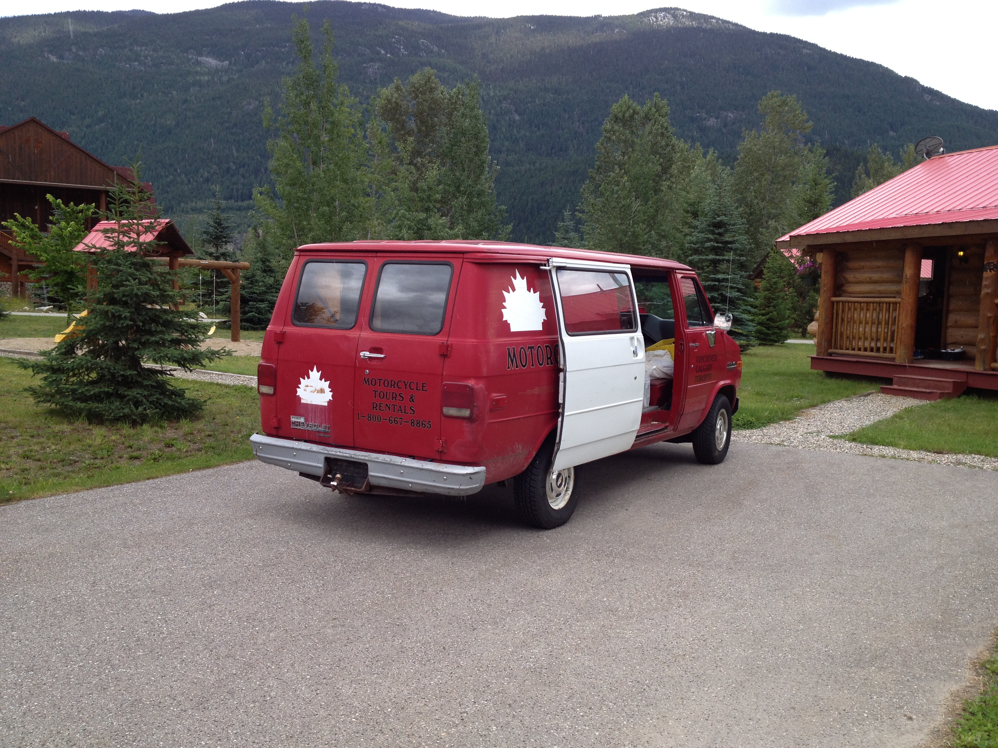 Das ist der Zimmerputzwagen. Also in 99% aller Hotels schieben die Zimmerputzdamen so ein Handwägelchen vor sich her. Hier in Revelstoke hat das Handwägelchen einen small block V8 mit schönem Sound
