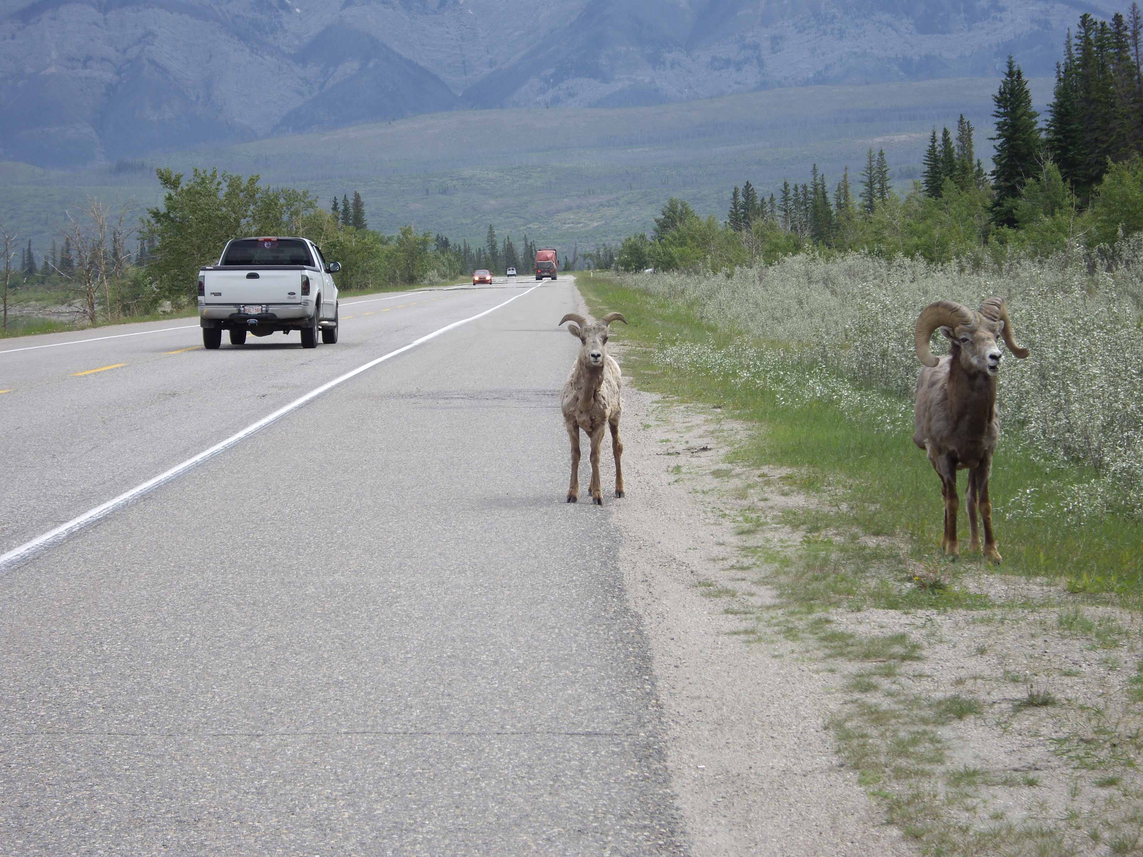 Nochmals die Rockies in voller Grösse vor uns, kurz vor dem Jasper Nationalpark und damit der Staatengrenze B.C. zu Alberta.