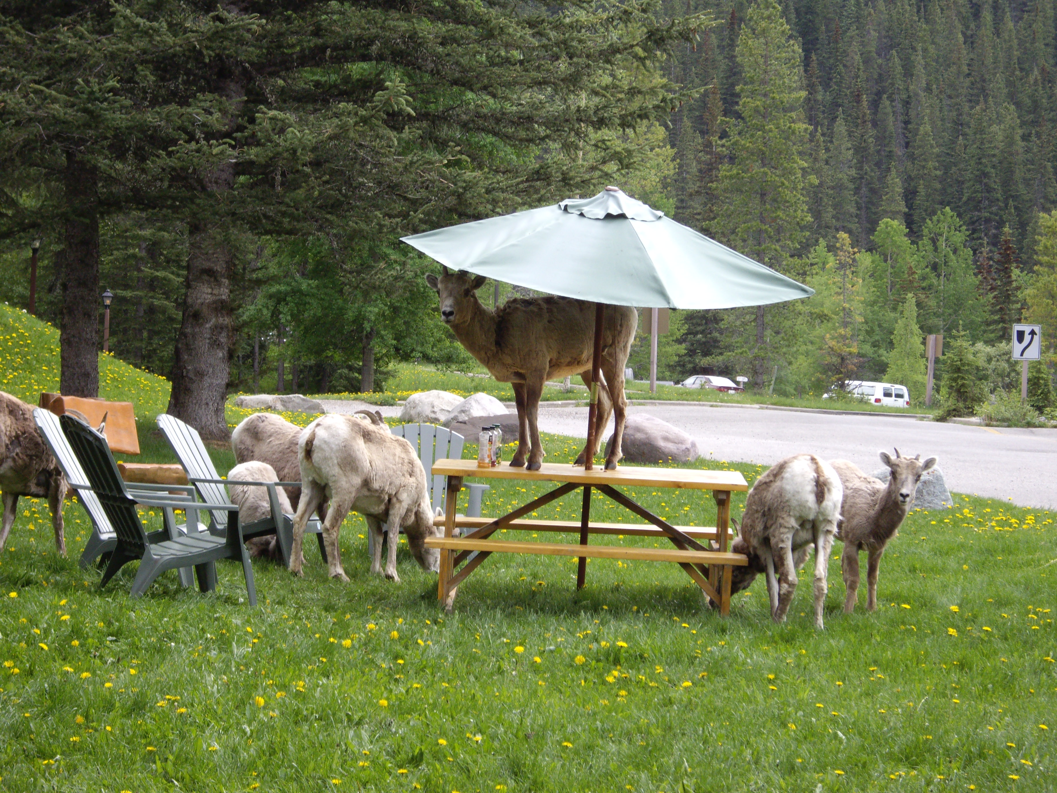 Das hier sind die kanadischen Kollegen Rian and John, Angestellte des Tourismusvereins. Ob sie kontrollieren, ob man den Nationalpark Pass gekauft hat? Das ernste Gesicht eines Rangers hat zumindest der Rechte (also John) schon gut drauf.