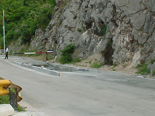 Nach der Ausreise konnte ich es mir nicht verkneifen, diese bescheuerte Reifenwaschanlage zu photographieren. Bei der Einreise nach Montenegro schwamm unser Daewoo fast davon, Wattiefe auf  jeden Fall überschritten. Vermutlich mal wieder jugendlicher Leichtsinn meinerseits, jedenfalls hatte der jugoslawische Zöllner keine Freude an meinem Photoapparat und rannte zu mir und schrie was von „dawai, dawai“. 🙂