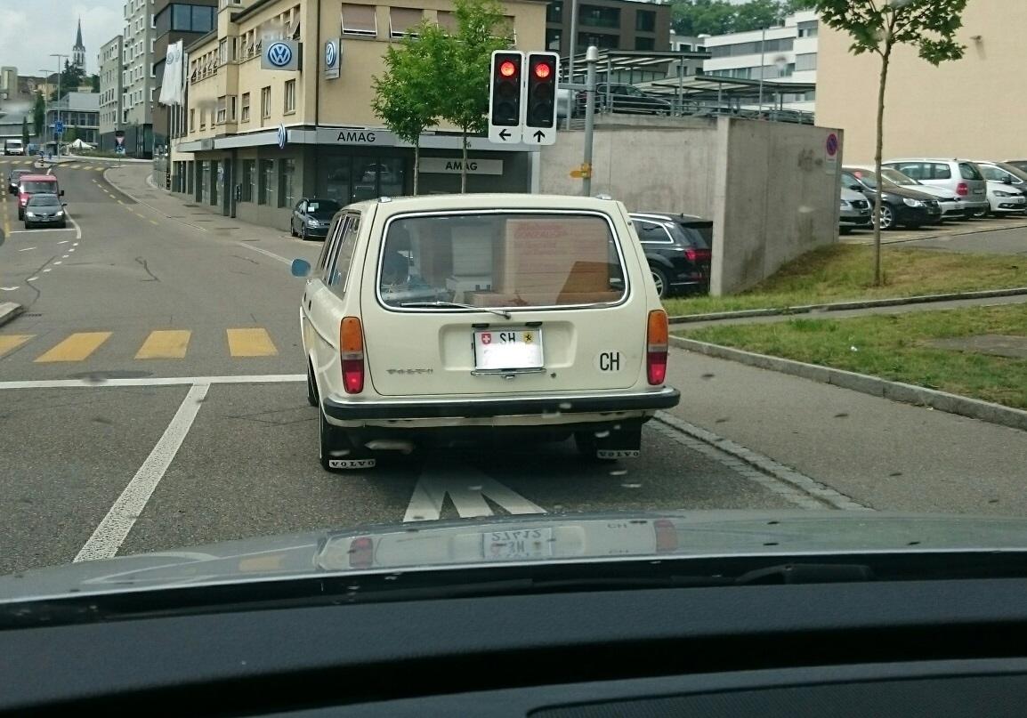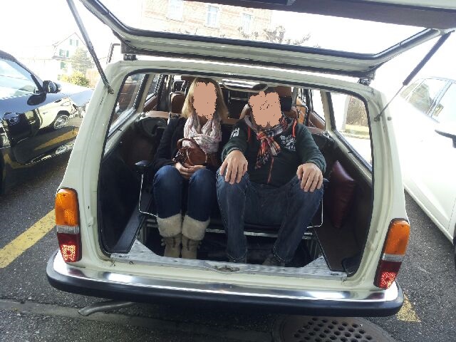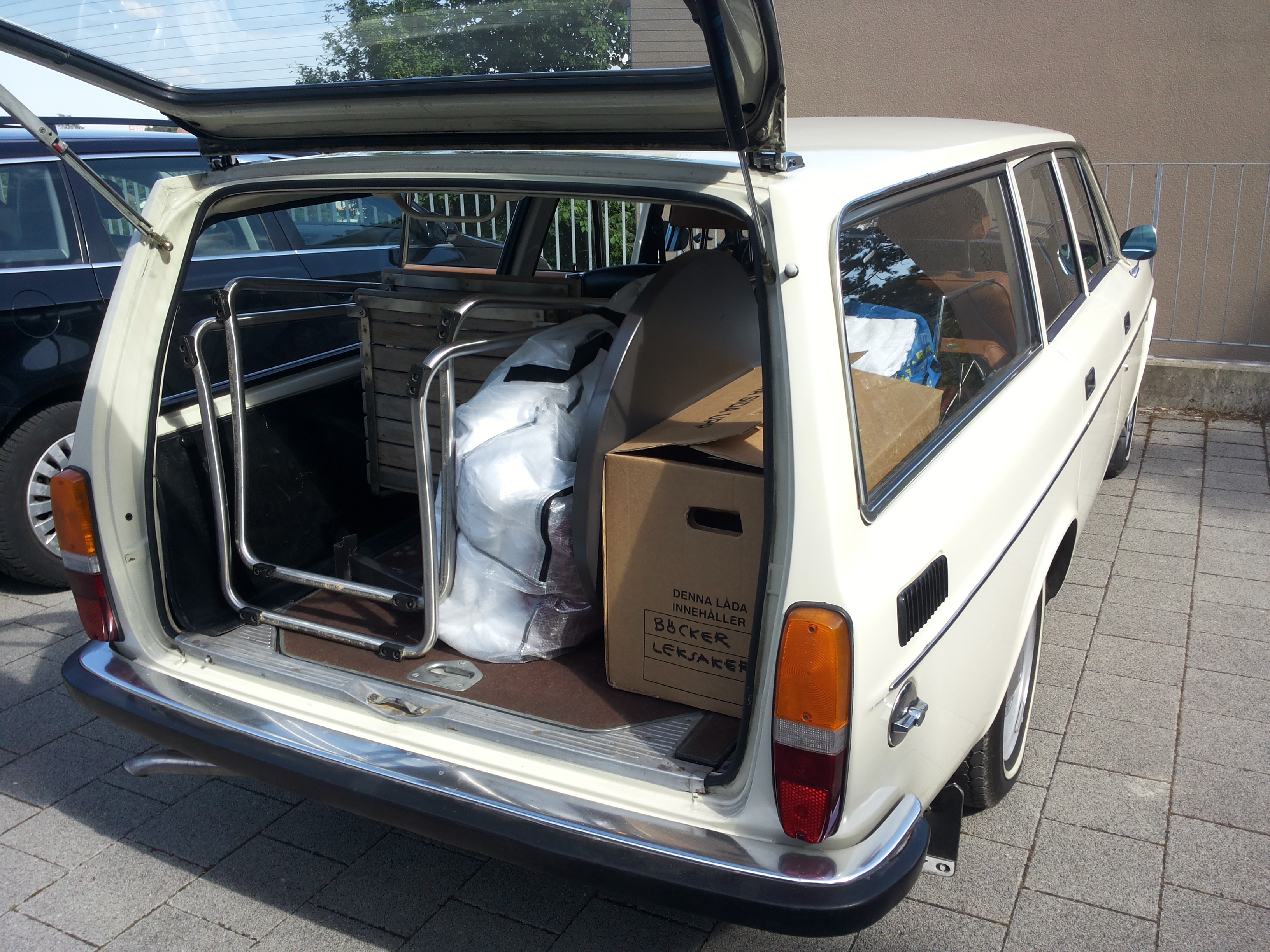 Auf der Strasse dann das gewohnte „so einen hatte ich auch einmal“ und freundliche Blicke von den Passanten. Interessanterweise bekomme ich aber recht oft die Frage, was das eigentlich für ein Auto sei – der Kühlergrill hilft da nämlich nicht wirklich weiter. Die charakteristische Diagonale mit dem Symbol für Eisen (oder besser bekannt als dem Zeichen für das männliche Geschlecht) kam erst später. So muss dann halt freundlich Aufklärungsarbeit geleistet werden. Meine Frau stand dem „Ding“ von Anfang an ganz positiv gegenüber und findet, er passe zu mir. In den letzten Wochen hat sich der Volvo nun auch ihr Herz erschlossen. Ein Umzug stand an und die Versuchung ist natürlich gross, sich eine ebene Ladefläche von der gefühlten Grösse eines halben Tennisplatzes (tatsächlich ca.2.10m x 1.2m) zunutze zu machen. Die folgenden Bilder sind Zeugen, dass wir dieser Versuchung erlegen sind. Die Distanz zwischen Auf- und Abladeort war kurz, keine 10 Minuten Fahrt. Das meiste davon innerstädtisch. Beim Gewicht gingen wir eher auf Nummer sicher, das Volumen wurde aber ausgereizt.