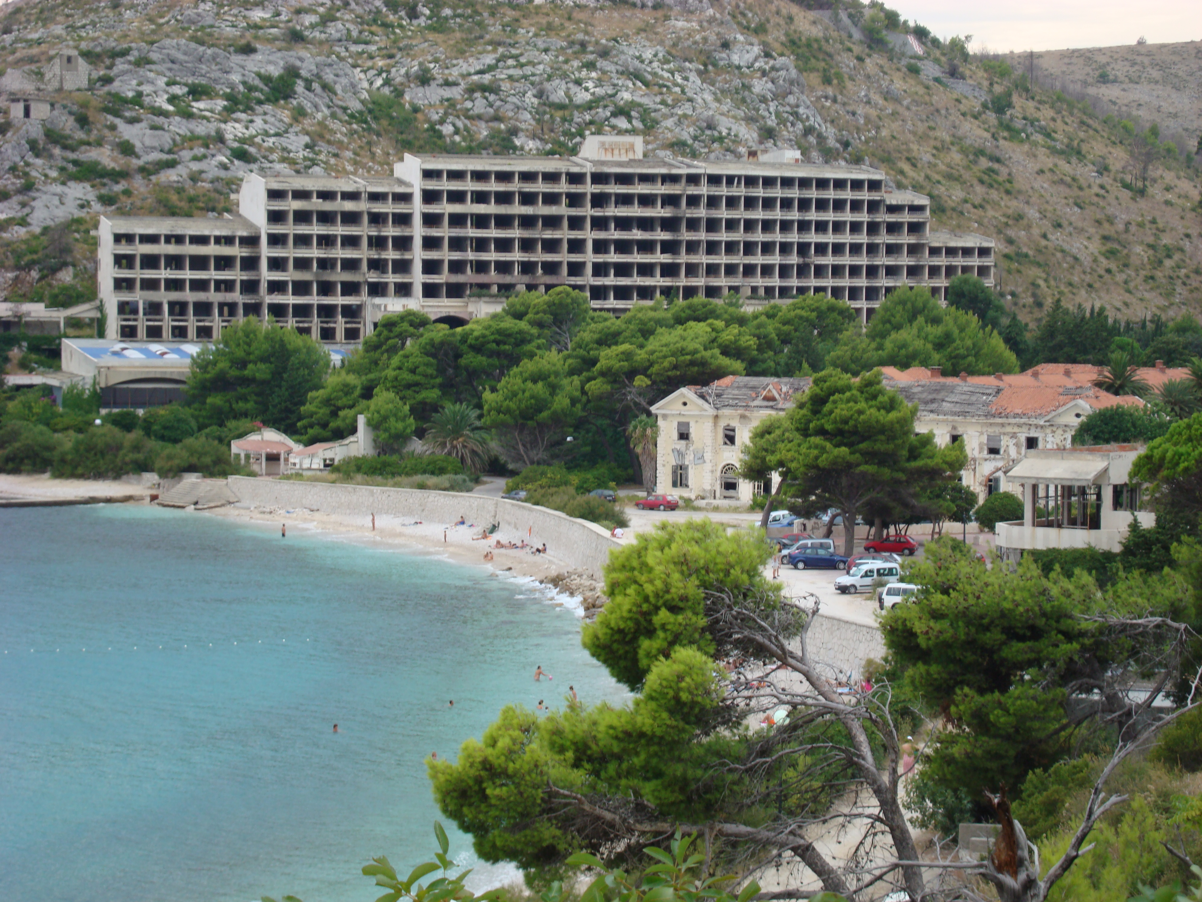Zum Abschluss folgen ein paar Bilder der Region Dubrovnik, hier „erholten“ wir uns am Meer von der Reiserei im Dörfchen Mlini. Die hier gezeigten Ruinen befinden sich in Fussgängerdistanz in Srebreno. Für Ruinenfreaks; in kommenden Beiträgen folgen weitere Bilder dieser zerschossenen, ehemaligen Ferienfabriken. Wer sich für die Gegend Dubrovnik-Trebinje-Mostar interessiert, sei noch dieser Beitrag dieses Blogs ans Herz gelegt: Ex-Jugoslavija-Kurztrip 2001