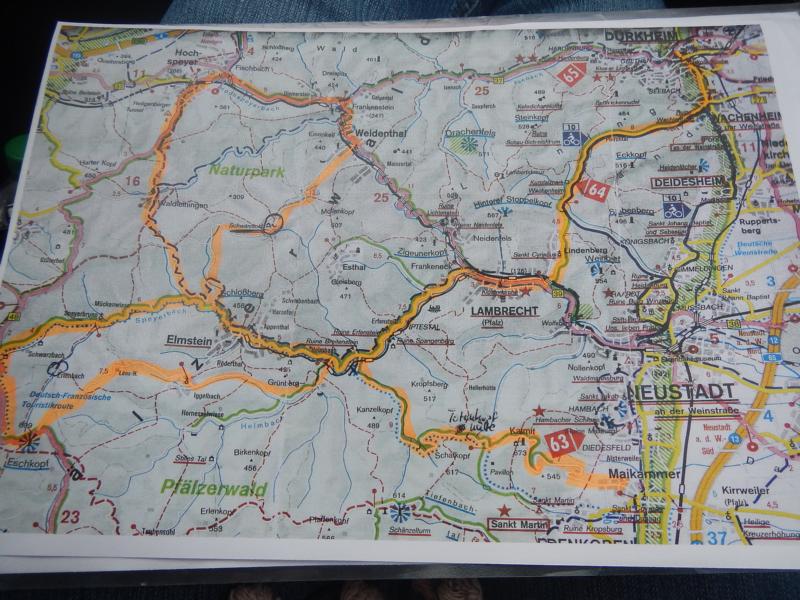 Ausgangspunkt war Bad Dürkheim an der Pfälzer Weinstraße. Von dort aus ging es Richtung Wachenheim, wo wir die Weinstraße verließen und nach Lindenberg die ersten Kurven im wundervoll herbstlich dekorierten Wald unter die Räder nahmen. Welchen genauen Verlauf man, wählt, bleibt bei dem Angebot an schönen Strecken jeden selbst überlassen.