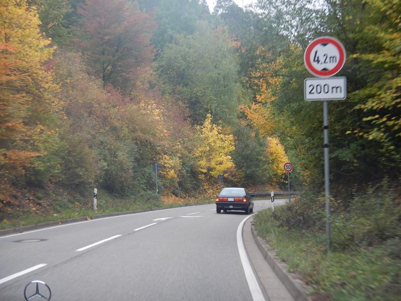 Was für Motorradfahrer ärgerlich ist, kam uns Youngtimerfahrern nur zu Pass. Viele der kleineren Sträßchen und Wege sind am Wochenende und an Feiertagen für Motorradfahrer gesperrt. Mit teils übermotivierten Rennradfahrern ist dennoch zu rechnen. Grundsätzlich empfiehlt sich, wie immer bei Ausfahrten, eine gewisse Vorsicht. Manche der Straßen sind nicht breit genug damit zwei PKW einander passieren können. Da heißt es ins Bankett ausweichen! Was gerade Fahrern von Autos mit gelben Kennzeichen ausgesprochen schwer fällt…