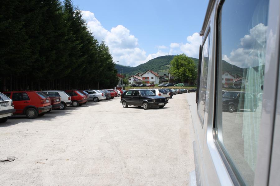 Aber genau so eine Brücke an der Hauptverkehrsstraße Richtung Banja Luka wurde für uns zur Zeitmaschine. Zu einer Zeit als die Brücke geplant und dann auch fast fertig gebaut wurde, dachte man wohl ein einen Aufschwung der ganzen Region und einen nicht unerheblichen Straßenverkehr. So musste also eine Fußgängerüberquerung her um den Reisenden von der anderen Straßenseite den sicheren Weg zum Motel auf der anderen Seite zu ermöglichen. Übrig geblieben sind zwei Treppentürme und ein fantastischer Ausblick auf einen Querschnitt europäischer Kraftfahrzeuge der späten 80er Jahre, die fast staatstragend an uns vorbeifuhren und ein kindisches Gefühl der Freude verbreiteten.