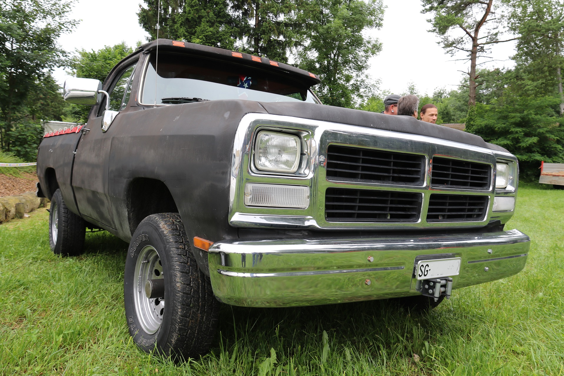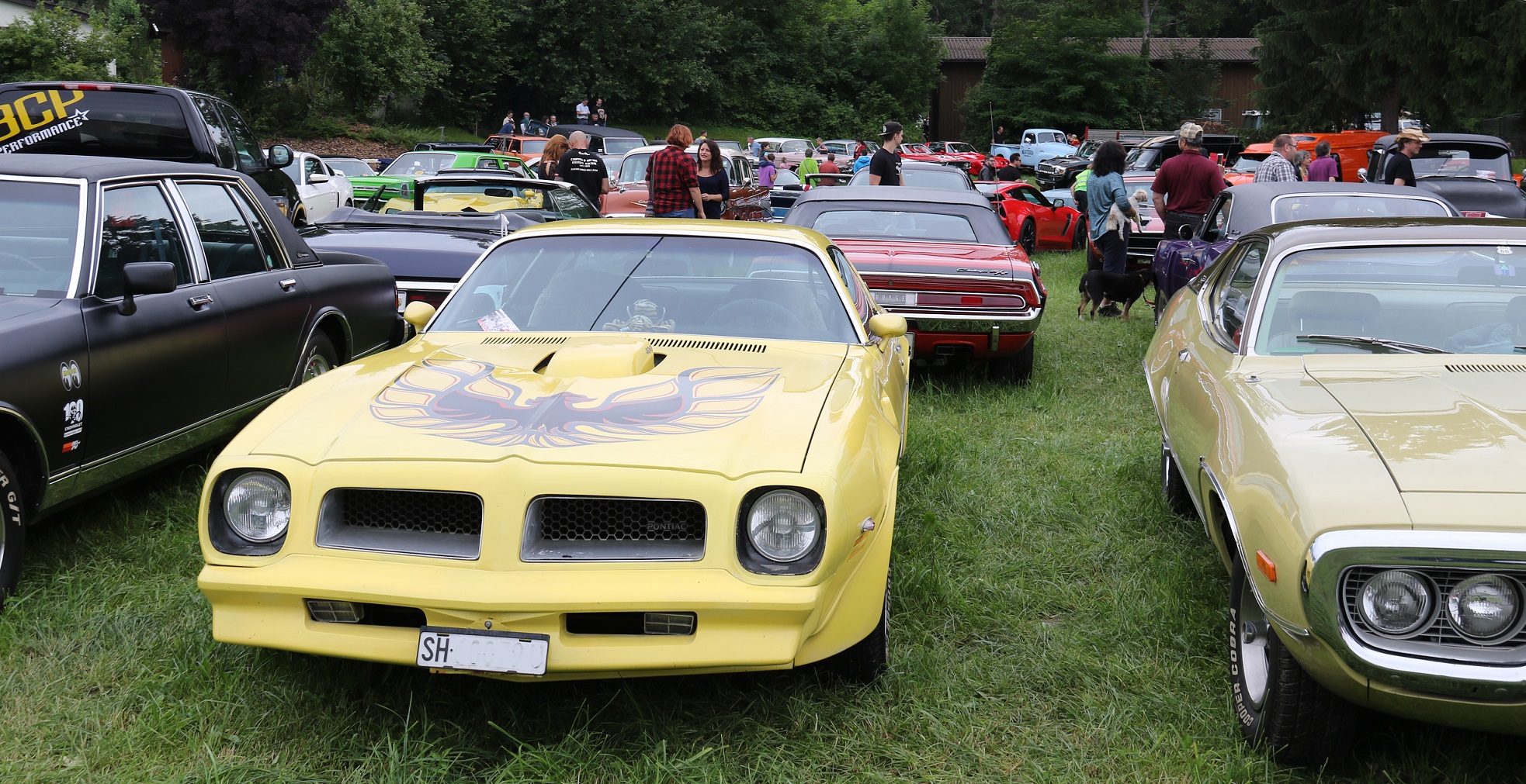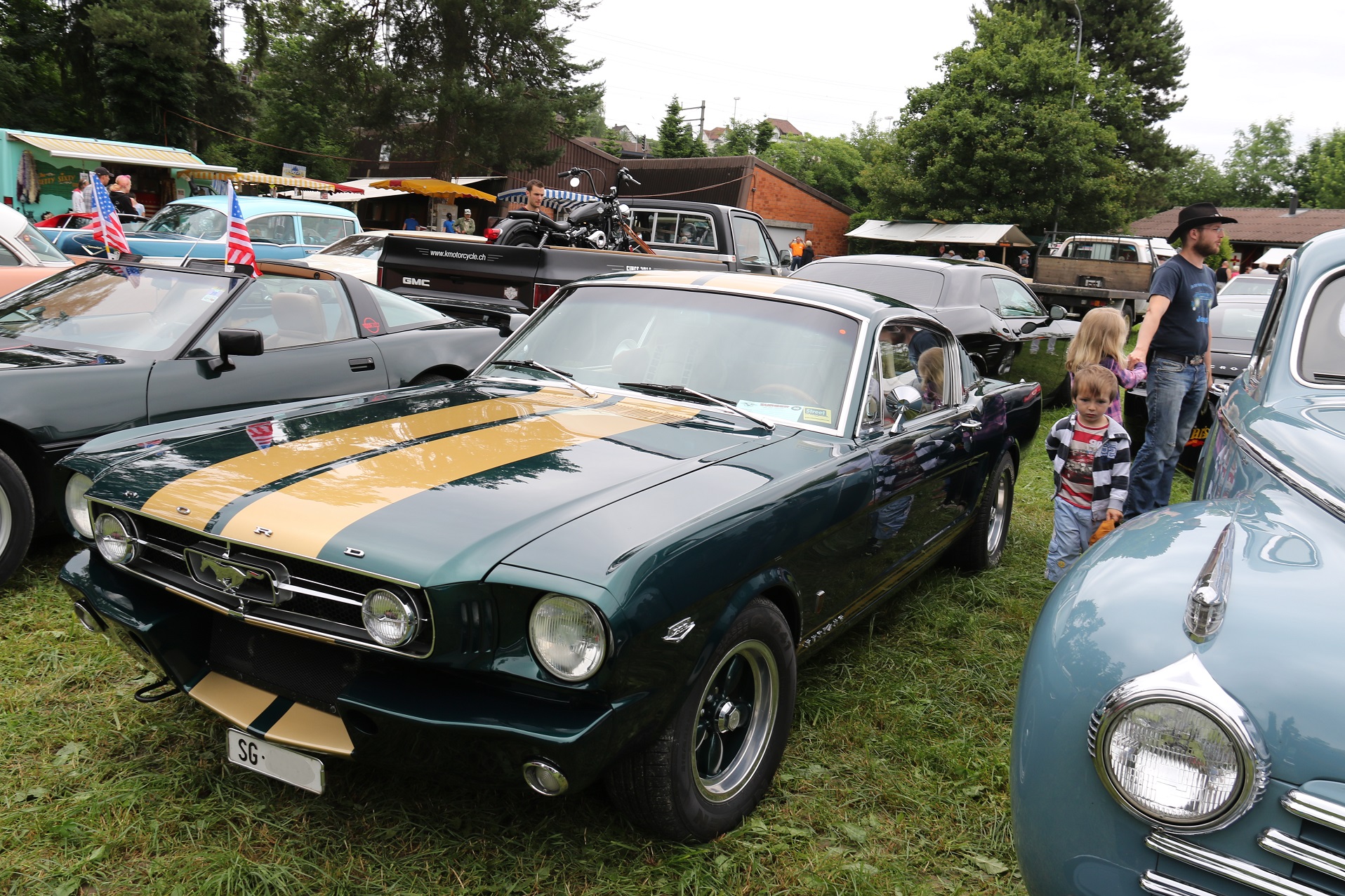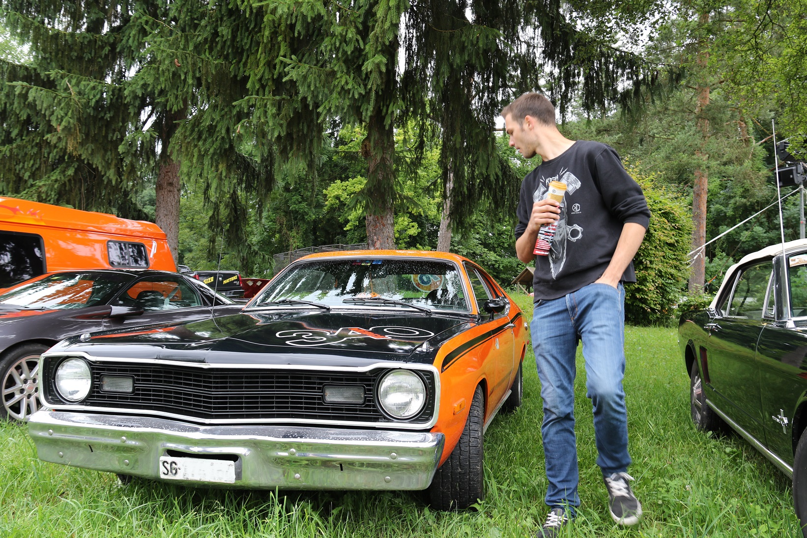 Das Besucherfeld war erfreulich bunt. Vom Neuwagen, über die 90er und 80er Jahre zu den Chromautos der 70er und 60er, die Flossenschönheiten der fifties, aber auch eine Handvoll Vorkriegswagen waren vertreten. Diese Vielfalt in Sulgen halte ich für sehr sehenswert. Ebenfalls toll finde ich, dass Budgetautos neben wertvollen Muscle Cars stehen können und sich keiner daran stört.