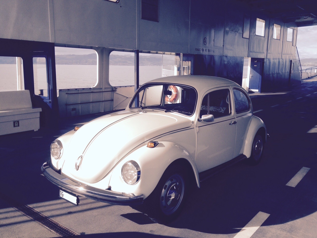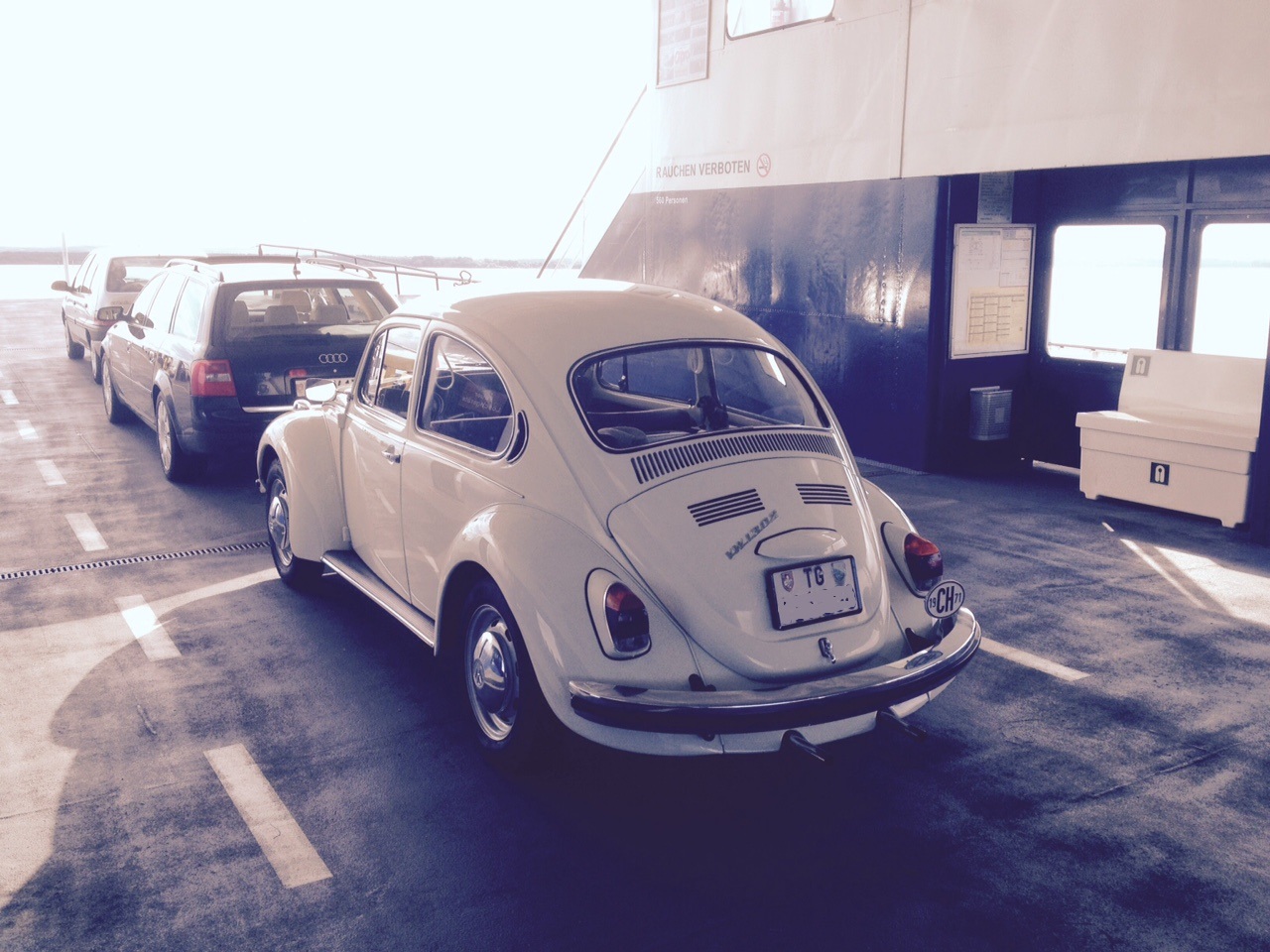 VW Käfer auf grosser Tour, gesichtet auf der Bodenseefähre Romanshorn – Friedrichshafen.
