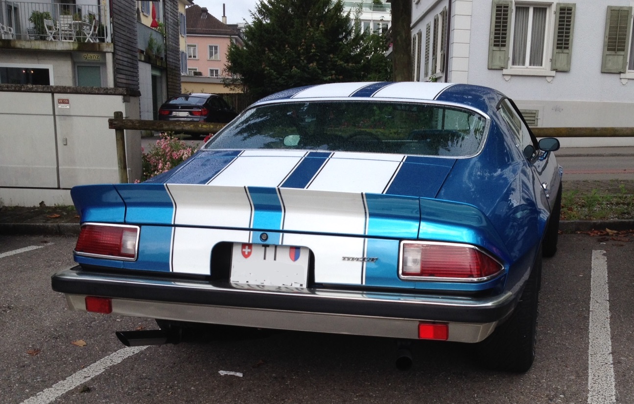 Chevy Camaro, Jahrgang 73 oder 74, in Winterthur auf einem Kundenparkplatz in Oberwinterthur.