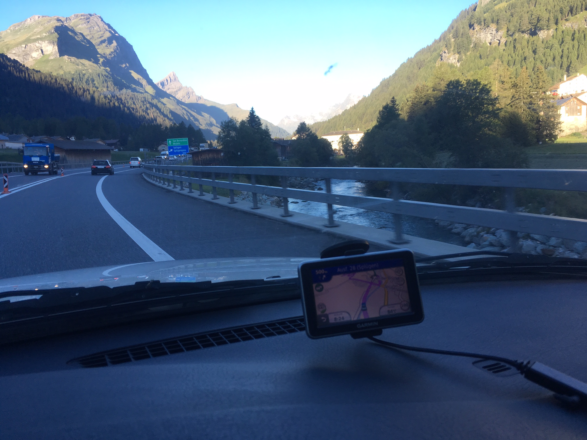 Am Anfang waren es noch 11.5 Grad, danach fiel das Thermometer auf 9.5 Grad um dann in Chiavenna um Viertel vor 9 wieder 21 Grad anzuzeigen.
