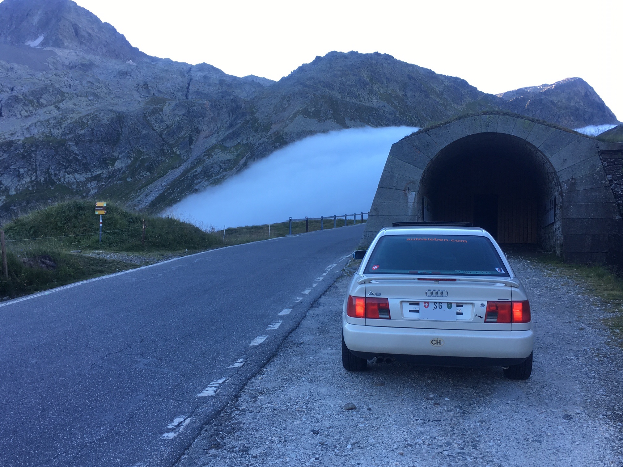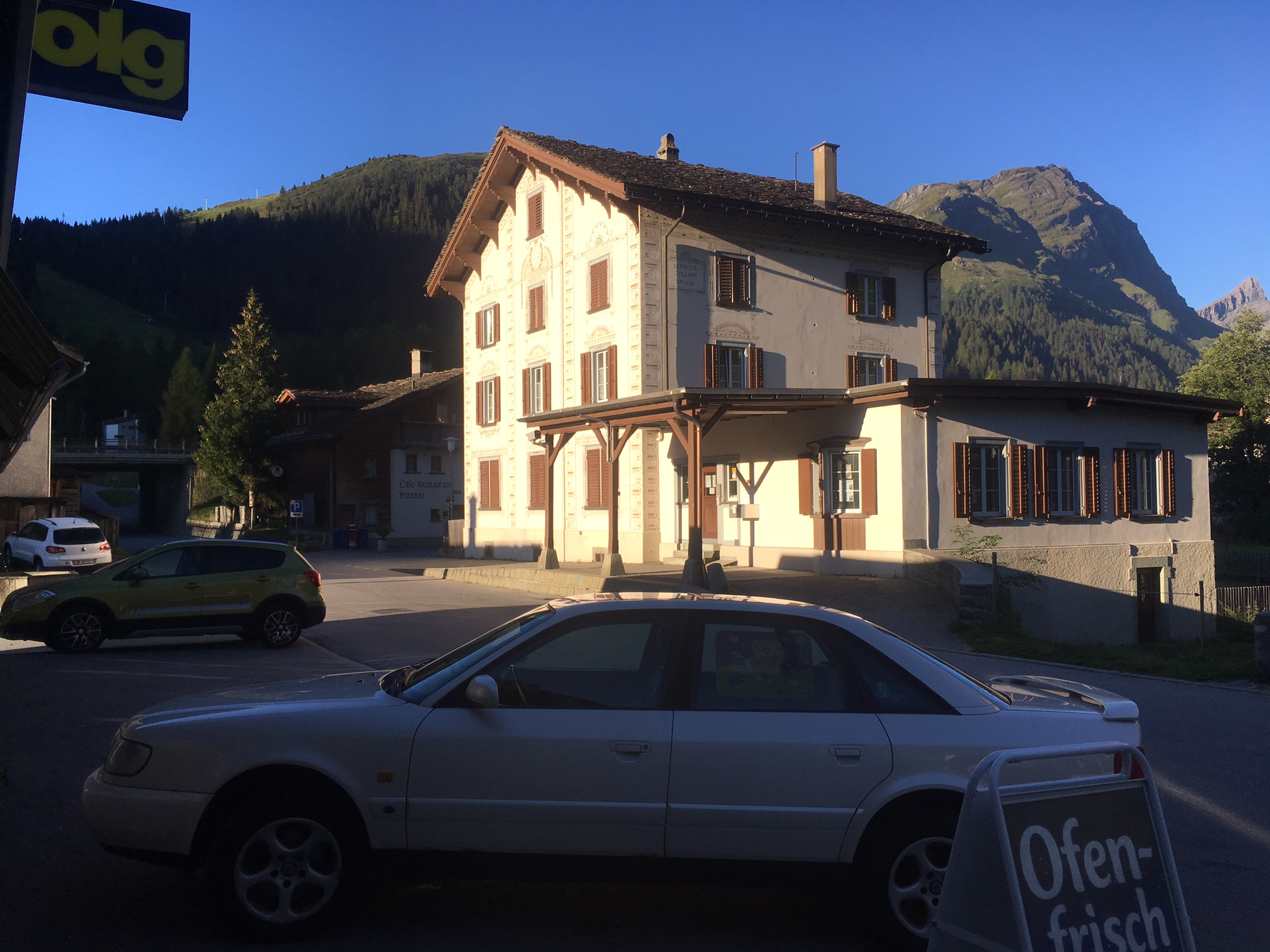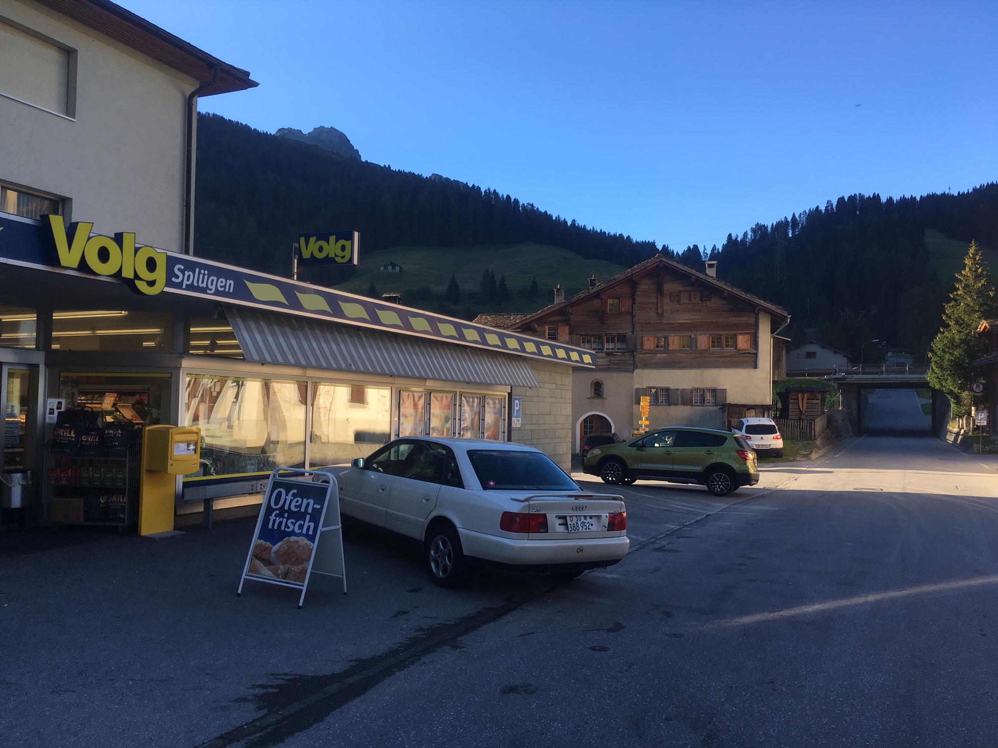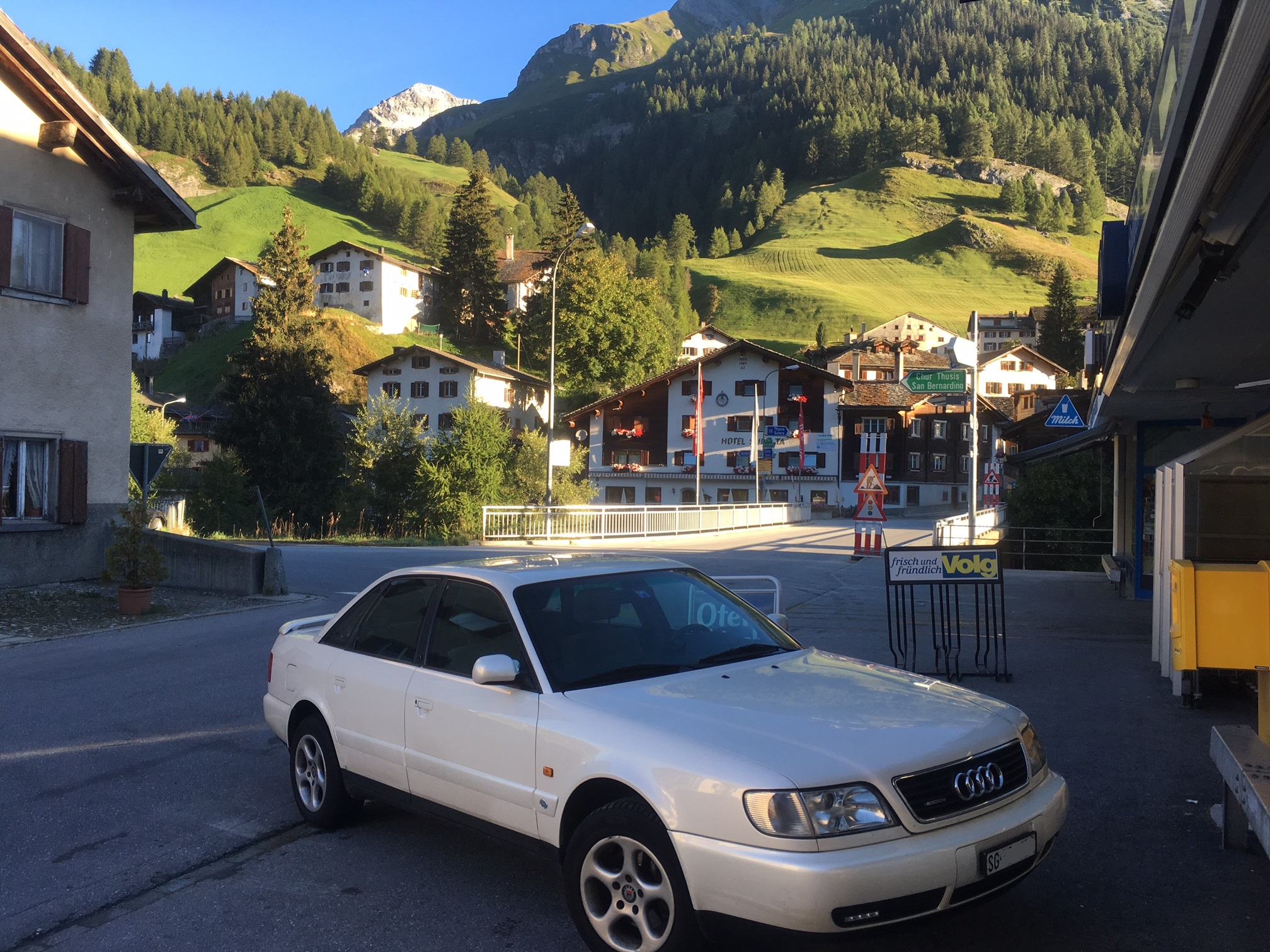 Das kleine Dorf Splügen ist eine kurze Besichtigung wert, im lokalen Volg kann man sich mit Speis und Trank eindecken. Das Fahrzeug ist dieses Mal ein 1996er Audi A6 2.8 30V quattro. Mehr zum Fotowagen finden Sie hier und da.