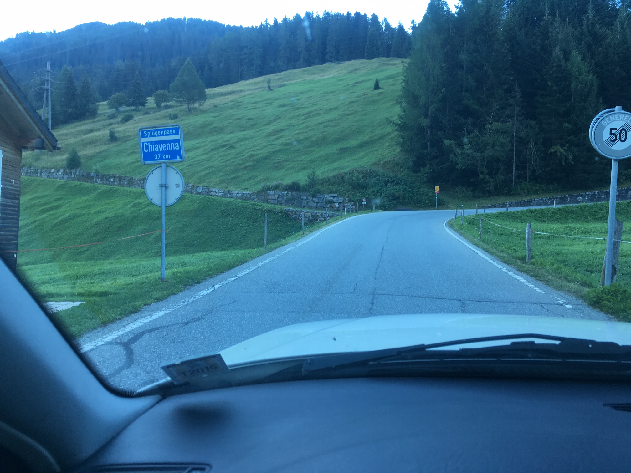 Anfahrt zum Splügen über die Nordrampe des San Bernadinos. Ausfahrt Splügen (das Dorf am Fusse des Passes heisst ebenso) benützen, sobald Sie von der Autostrasse weg sind, ist Chiavenna angeschrieben.