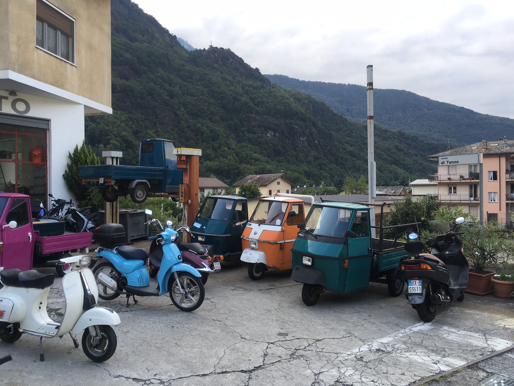 Leider ist diese Marke wie auch vieles andere Schöne in Italien Glanz der vergangenen Grösse und Innovationskraft. Diese mobile Vergangenheit ist aber im Vergleich zu vielen alten Häusern in einem gepflegten Zustand. Dafür dominieren in grösseren Städten leider hässliche Einkaufsmärkte das Ortsbild. Wer aber das alte, beschauliche Italien mag, ist gerade hier um Chiavenna ausserhalb der Ferienzeit am richtigen Ort. Die Leute sind freundlich, das Essen gut und der Kaffee wie erwähnt ein besonderer Genuss!