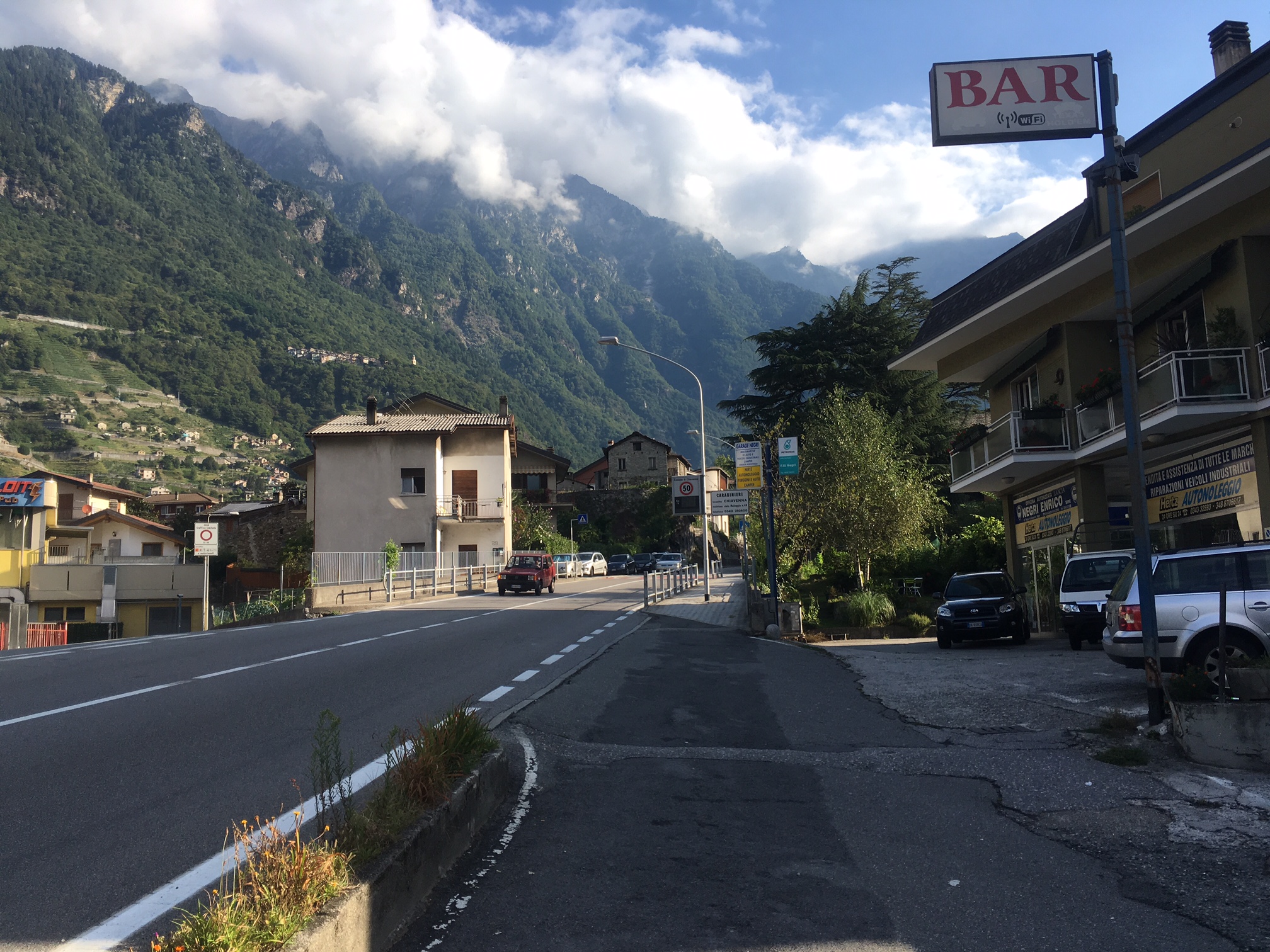 Willkommen in Chiavenna, hier ist es wieder sonnig und so wie wir Touristen uns den „estate“ in Italia vorstellen. Dazu gehört natürlich eine Bar am Strassenrand die guten Espresso serviert.