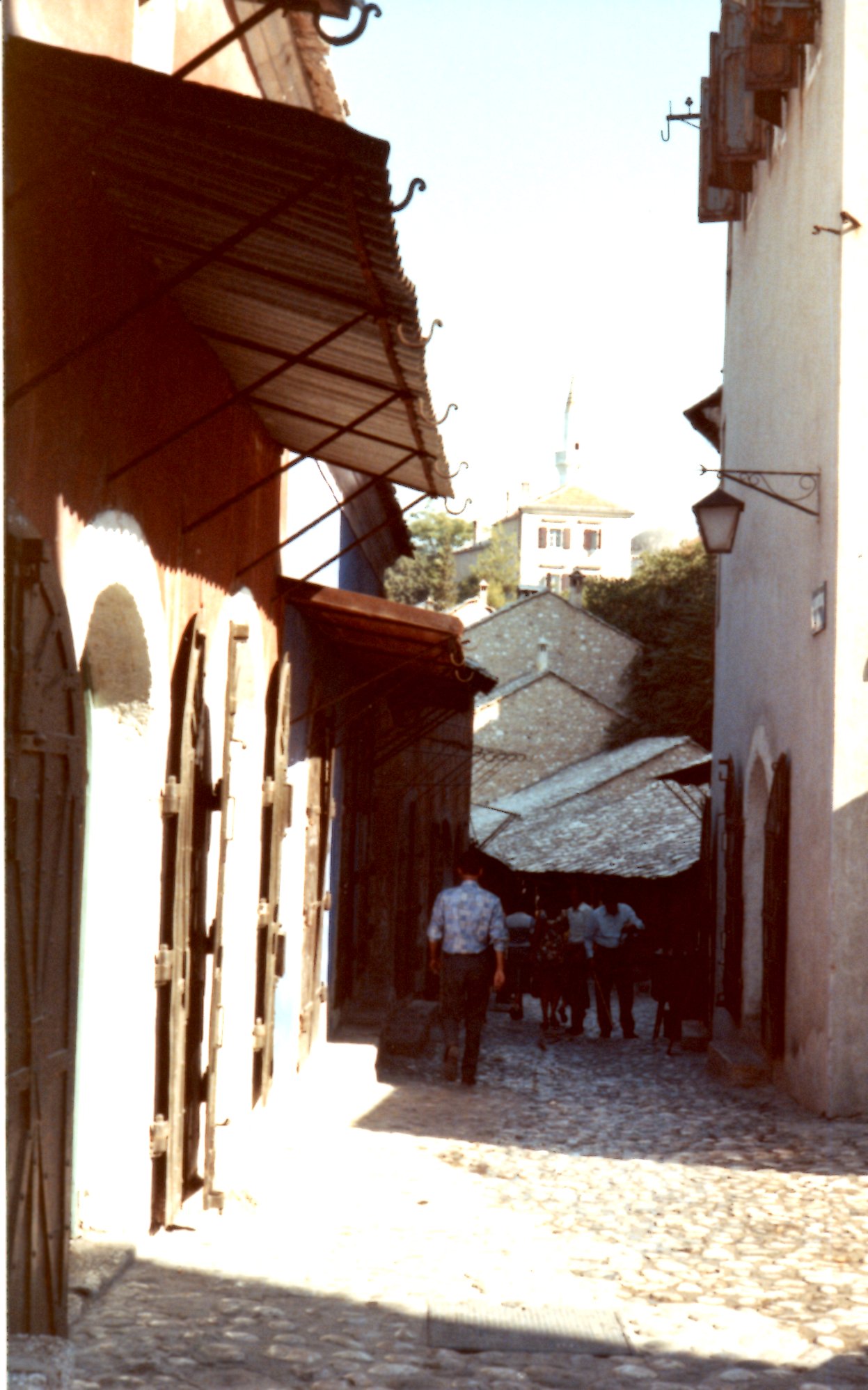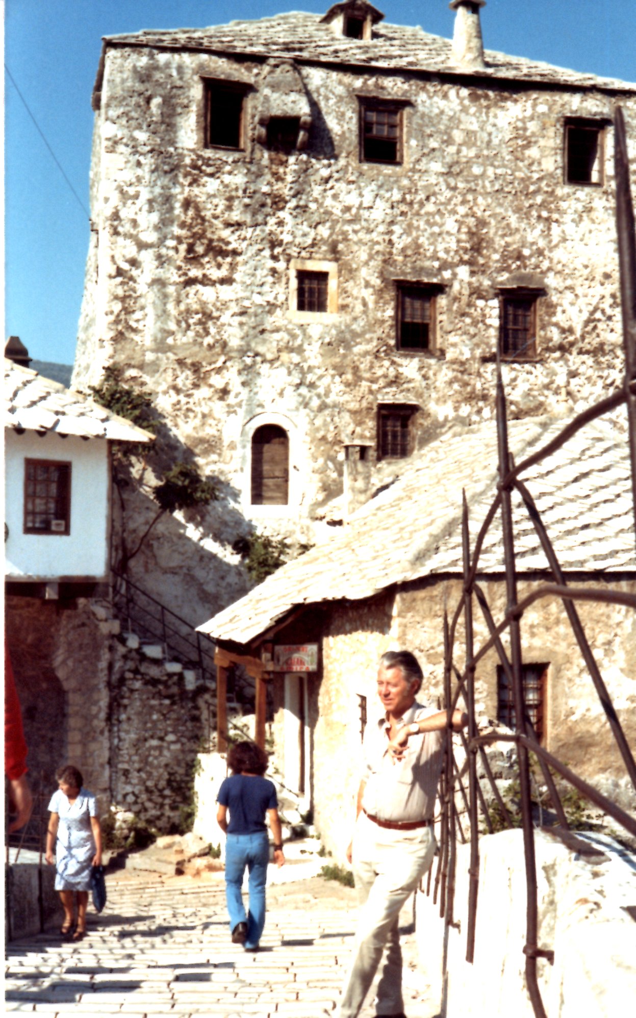 Die Brücke, an welche sich mein Grossvater so lässig lehnt, wurde in der Zwischenzeit gesprengt und wieder aufgebaut. Mehr Bilder dazu in folgendem Artikel: Ex-Jugoslavija Kurztrip 2001. Trotz der Schäden halte ich persönlich Mostar immer noch bzw. wieder für einen Abstecher wert.