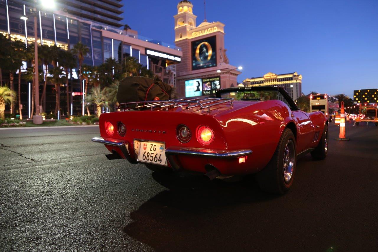 Was musste sein in Las Vegas, bevor wir weiterfuhren? Genau. Fotos von der Corvette auf dem Sunset Strip. Wann macht man solche Fotos? Richtig. Um 4:00 morgens. Weil davor und danach ist es völlig unmöglich im Gewühl von Autos und Menschen. Also ins Auto gesprungen und den Motor gestartet. Blocks neben dem Strip. Die Corvette bekam ihren eigenen Garagenplatz weit weg vom Trubel. Wir Viertelumdrehung und «Vrumm», gefolgt von einem «Kreissssschhh». Was war das? Erschrocken den Motor ausgemacht, geschaut und wieder gestartet. Nichts. Komisch. War wohl Einbildung.