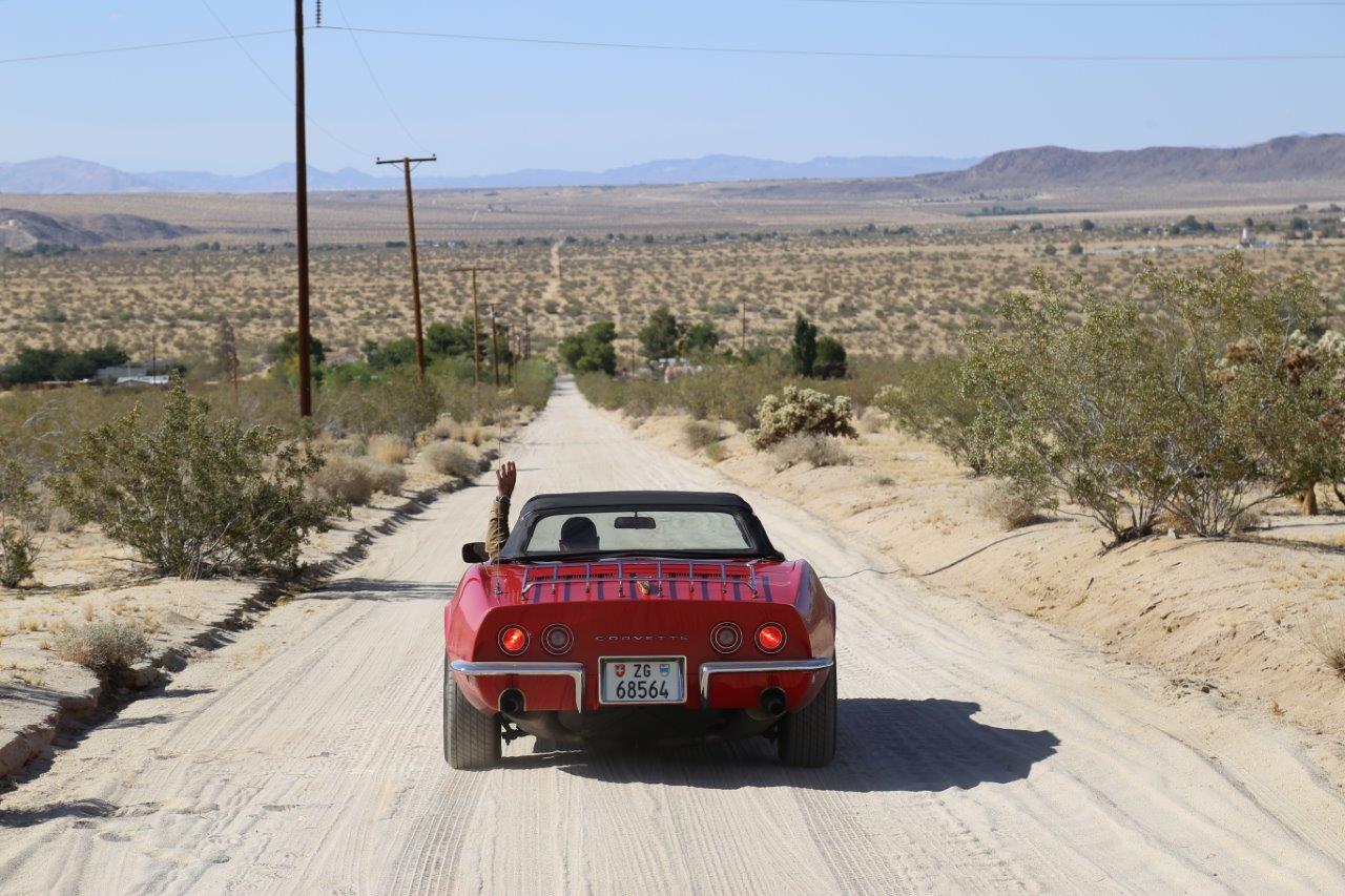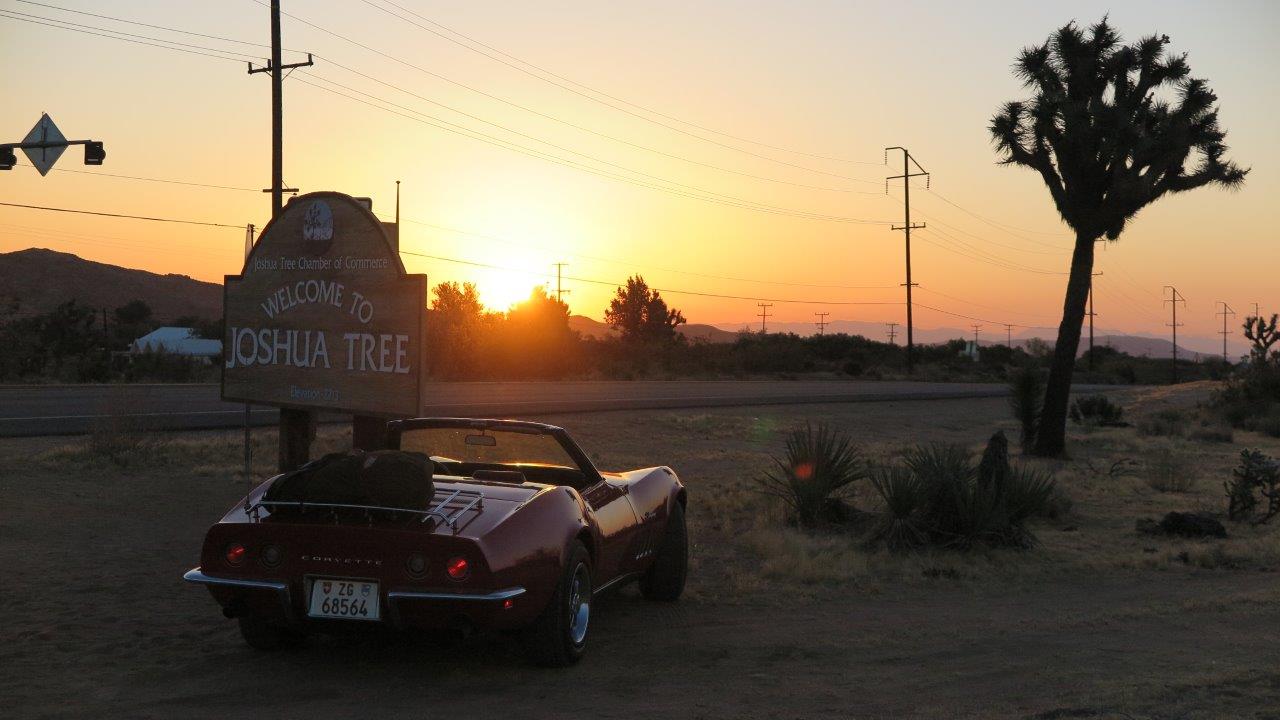 Jetzt wurde es ernst. Unsere erste «richtige» Tagestour sollte uns nach Joshua Tree führen mitten in die Mojave Wüste. Unsere Corvette hat keine Klimaanlage und durch den dünnen Fiberglasboden heizen die beiden dicken Abgasrohre mit dem Getriebetunnel um die Wette. Gottseidank hatten wir unseren Jetlag liebevoll gepflegt. Wir waren um 5:00 schon auf dem Highway mit dem schön kühlen Morgenwind um die Ohren.