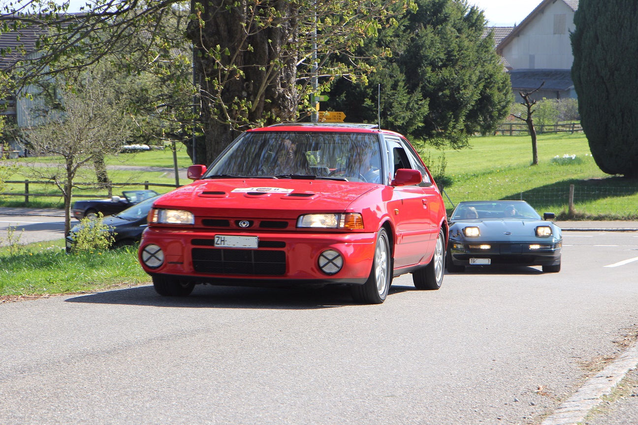 Japaner sind seltene Gäste an den Ausfahrten, leider! Hier aber vertreten mit dem seltenen Mazda 323 mit Turbo und Allrad.