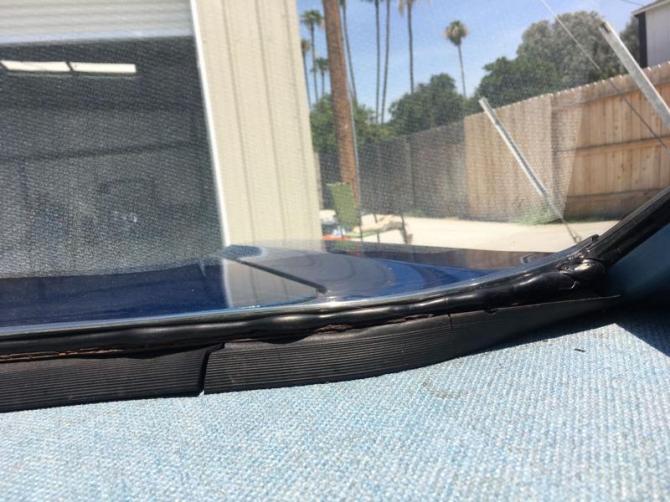 Auf den ersten Blick sieht die Montage der Windschutzscheibe gut aus. Da es in Kalifornieren selten regnet, kann man den Aussagen der Verkäufer ob sie den auch dicht sei, eher keinen Glauben schenken.