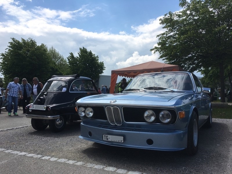 Mal etwas anderes: ein Oldtimertreffen auf dem Parkplatz eines Altersheimes. Sinnvoller Nebeneffekt, die Bewohner haben mal etwas Abwechslung vor der Haustüre und sehen Autos, Motorräder und Traktoren, welche sie von früher her sicher noch kennen. Organisator waren die Ostschweizer Freunde der Oldtimer-Motorräder FAM.