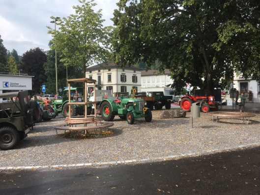 Bauma, ein regnerischer Sonntagmorgen, man könnte meinen ruhiger könnte es nicht mal im Tösstal sein, doch weit gefehlt! Sind sich die Tösstaler schon gewohnt, dass an jedem zweiten Wochenende zuverlässig die Dampfzüge der DVZO (Dampfbahnverein Zürcher Oberland) verkehren, kam es nun zum ersten Mal zu einem Doppeltreffen. Oldtimertreffen auf dem Bahnhofplatz wie auf den Schienen. Im Nachhinein fragt man sich, warum es so etwas nicht öfter gibt. Ich hätte nicht gedacht, wie viele dampfbegeisterte Oldtimerfahrer es gibt. Und hätte einem Bahnclub nie soviel Weltoffenheit zugetraut: Chapeau in beide Richtungen speziell in Zeiten der inszenierten Gretareligion.