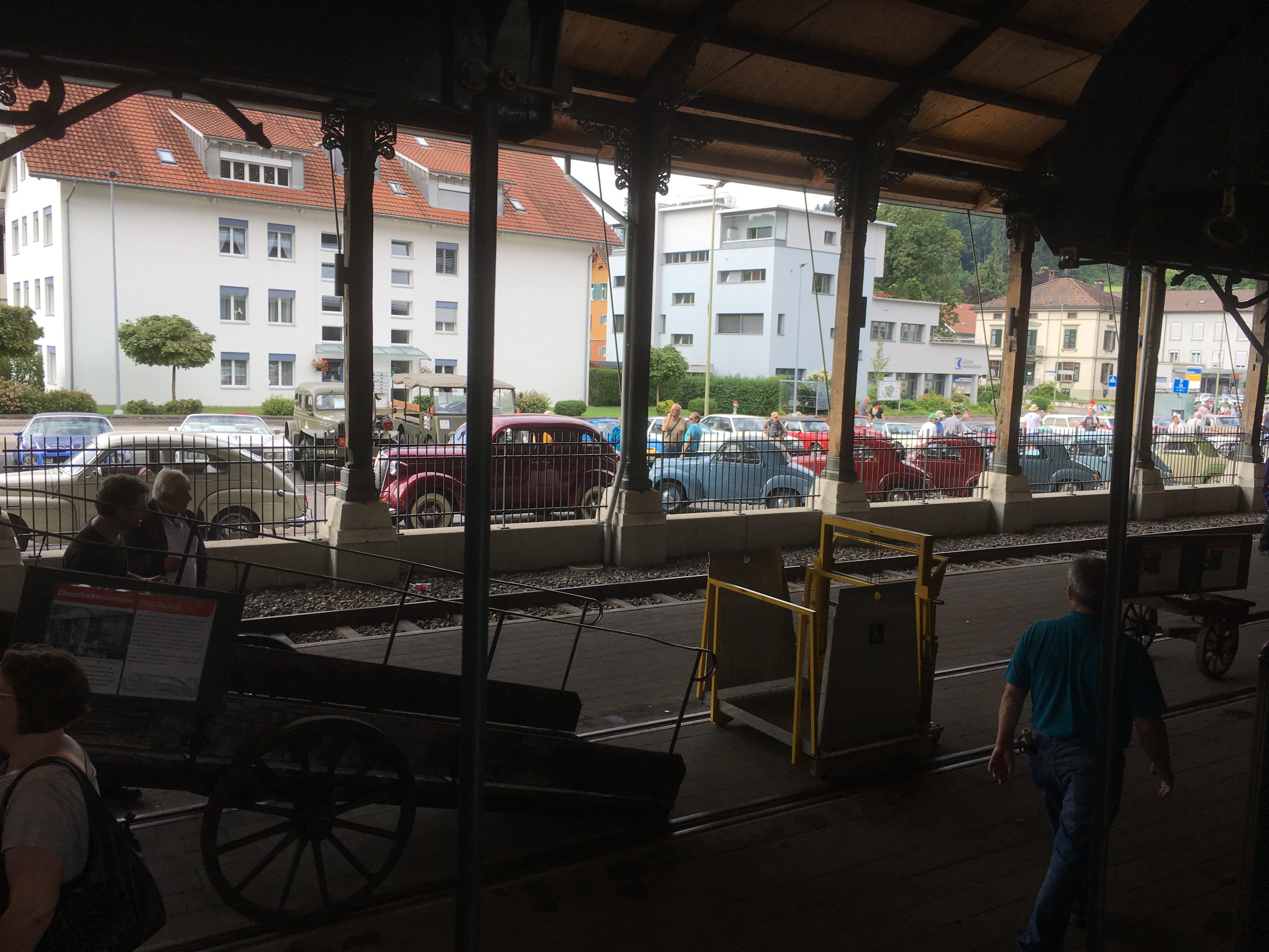 Gottseidank besserte sich das Wetter bald und der Parkplatz füllte sich. Ebenso füllten sich alsbald die Züge der DVZO welche Richtung Hinwil abdampften. Hier ein erster Eindruck am Morgen vor unserer Fahrt nach Hinwil und zurück. Die Vielfalt der Oldtimer war riesig und es befanden sich auffallend viele „Schweizer“ unter den Besucherfahrzeugen, toll!