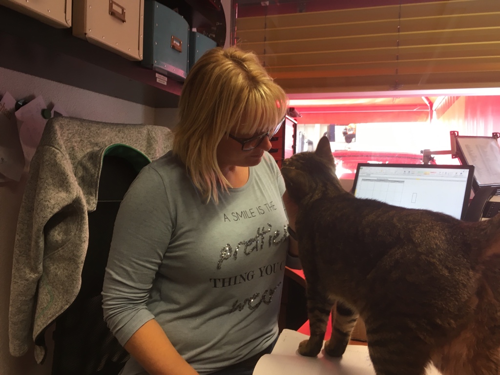 Iris Heuer mit dem zugelaufenen Betriebskater