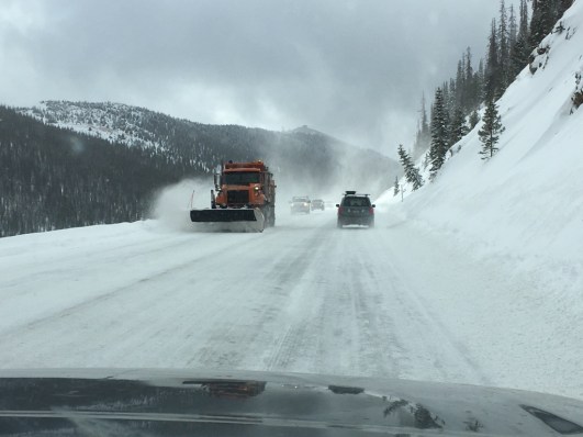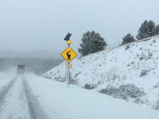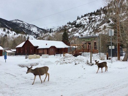 In Lake City angekommen stellten wir erstmal fest, dass „City“ für die paar Häuser etwas hoch gegriffen ist. Übernachtungen werden nur im Sommerhalbjahr angeboten. Die erblickten Wildtiere lassen auf eine geringe Störung durch Menschen schliessen… Nach dem Verlassen des Ortes sahen wir bei der nächsten Passrampe die Schilder „no winter services between 7pm-5am“. Es war bereits kurz nach 5pm. Unser GMC schaffte den verschneiten und darunter teilweise gefrorenen Übergang aber gut, die gefühlten 2 Tonnen müssen einfach sanft bewegt werden.