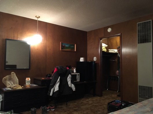 In South Fork angekommen erblickten wir schon bald dieses schöne Schild aus den 70ern. Das Rainbow Motel ist tatsächlich auch bis in die Zimmer unverändert aus dieser Zeit inklusive der sicht- und hörbaren Gasheizung.