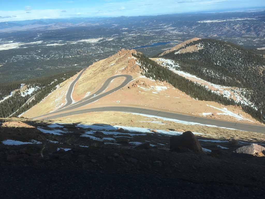 Für den nächsten Morgen planten wir eine Rundtour südwärts zum Pikes Peak und nach Colorado Springs. Den Hinweg wählten wir etwas westlich über die Berge, den Rückweg über die Interstate östlich von Colorado Springs wieder nordwärts nach Denver. Mir war vorher nicht bewusst, dass sich sogar Denver bereits auf einer 1600m hohen Ebene befindet (one-mile-city) und ab der westlichen Stadtgrenze dann die richtigen Berge beginnen.