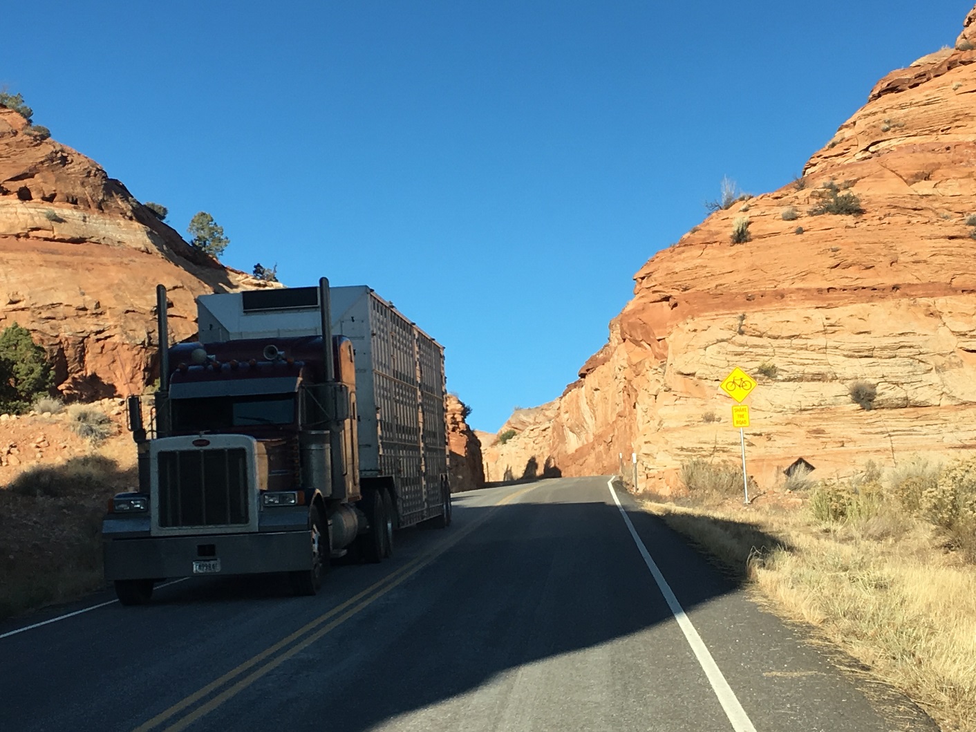 Heute verlassen wir das Capitol Reef Resort in aller Frühe und vorallem… in aller Kälte. Wir haben bald gelernt wie das die Amis machen; aufstehen, schnell rausgehen im Schlafanzug, Motor starten, dann zurück ins Motel, Kaffee aufsetzen und duschen. In uns Schweizern sträubt sich alles dagegen, allerdings kann ich die Leute auch verstehen. Oft treffen wir in der off-season Arbeiter an, welche wohl für beschränkte Zeit an einem Ort sind um einen Job zu machen. Die müssen wohl eh schon den ganzen Tag frieren, verständlich wenn sie morgens den Cummins-Diesel anwerfen in ihrem Dodge Pickup um mindestens frühmorgens warm zu haben. Link zu Teil 1 und Teil 2
