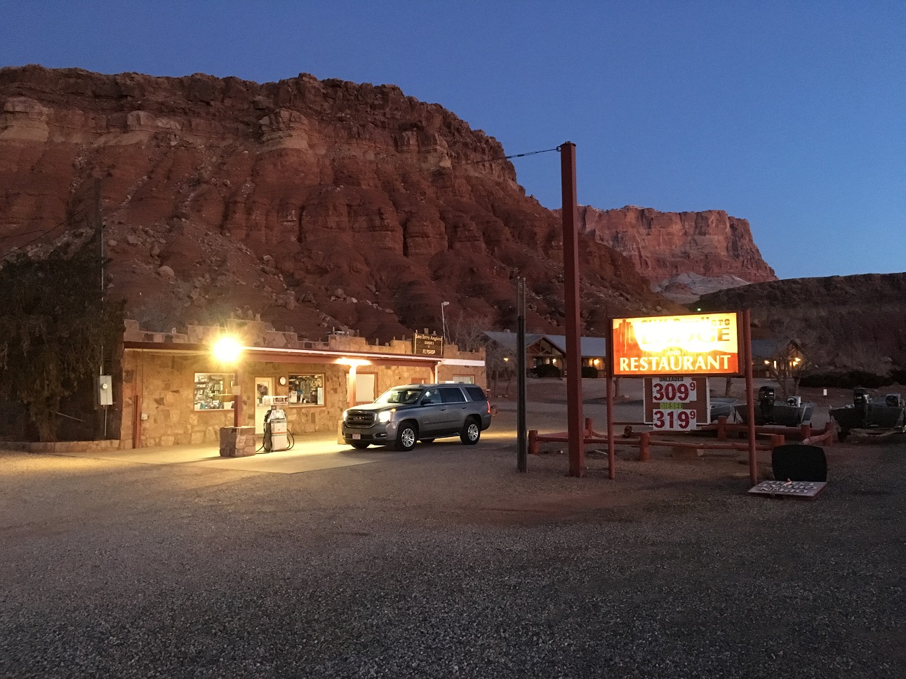 Da ausser Frühstück und kurzen Spaziergängen nicht mehr möglich ist aufgrund der Schneemenge fahren wir weiter Richtung Zion N.P. Unterwegs treffen wir auf ein kultiges aber ebenfalls „out of season“ geschlossenes Motel und Diner.