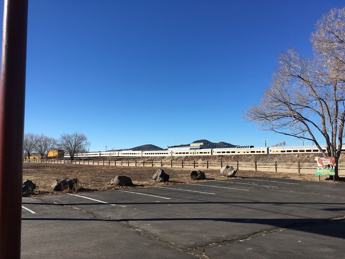 Williams AZ, da wo die Route 64 endet und auf die Interstate 70 bzw. auf die legendäre Route 66 trifft. Oder was von der Route 66 an wenigen Fragmenten dafür umso mehr an Tourishops übrig blieb. Züge fahren hier auch noch aus der Zeit, als die Route 66 noch durchgehend befahrbar war von Chicago bis LA.