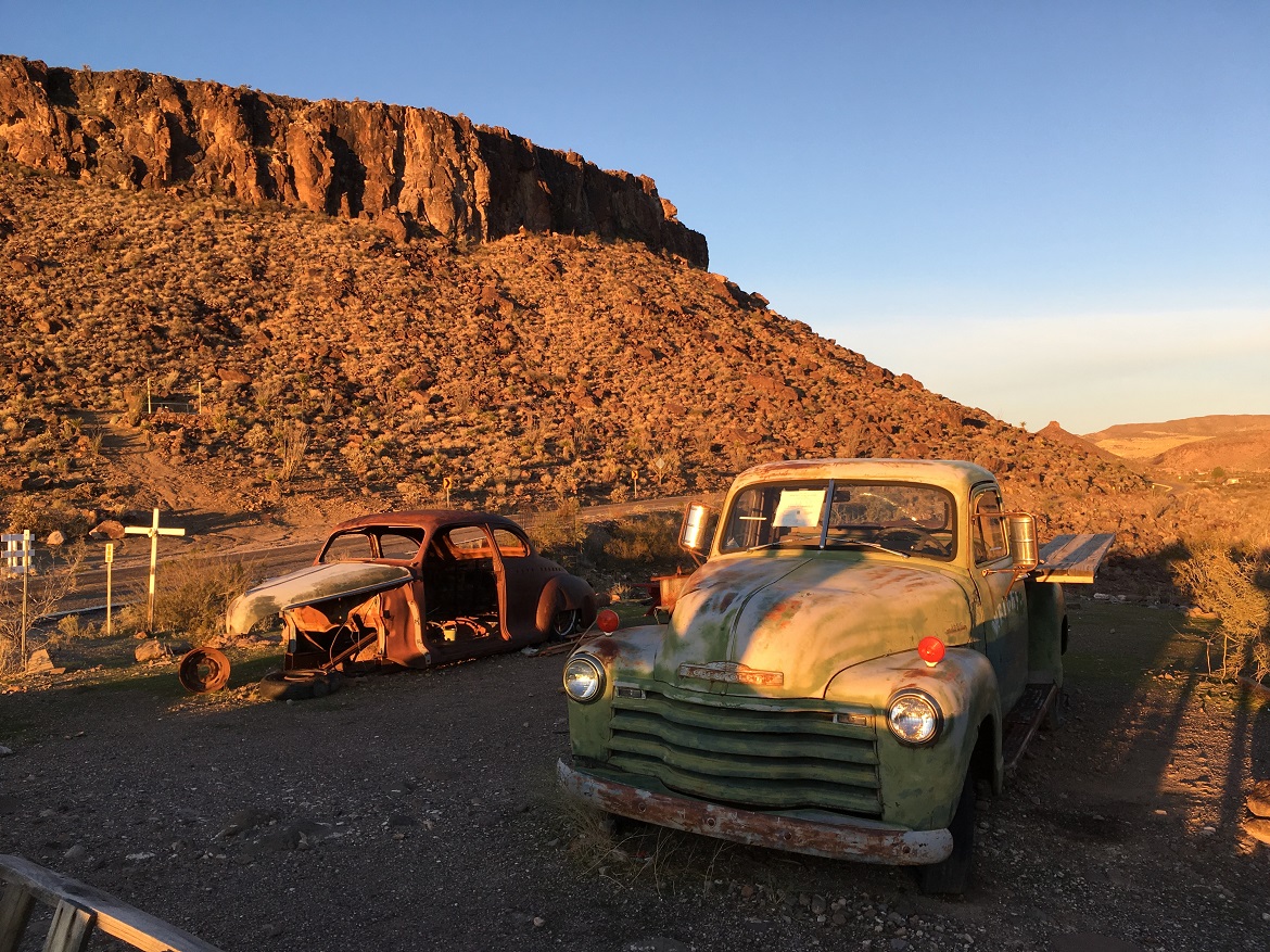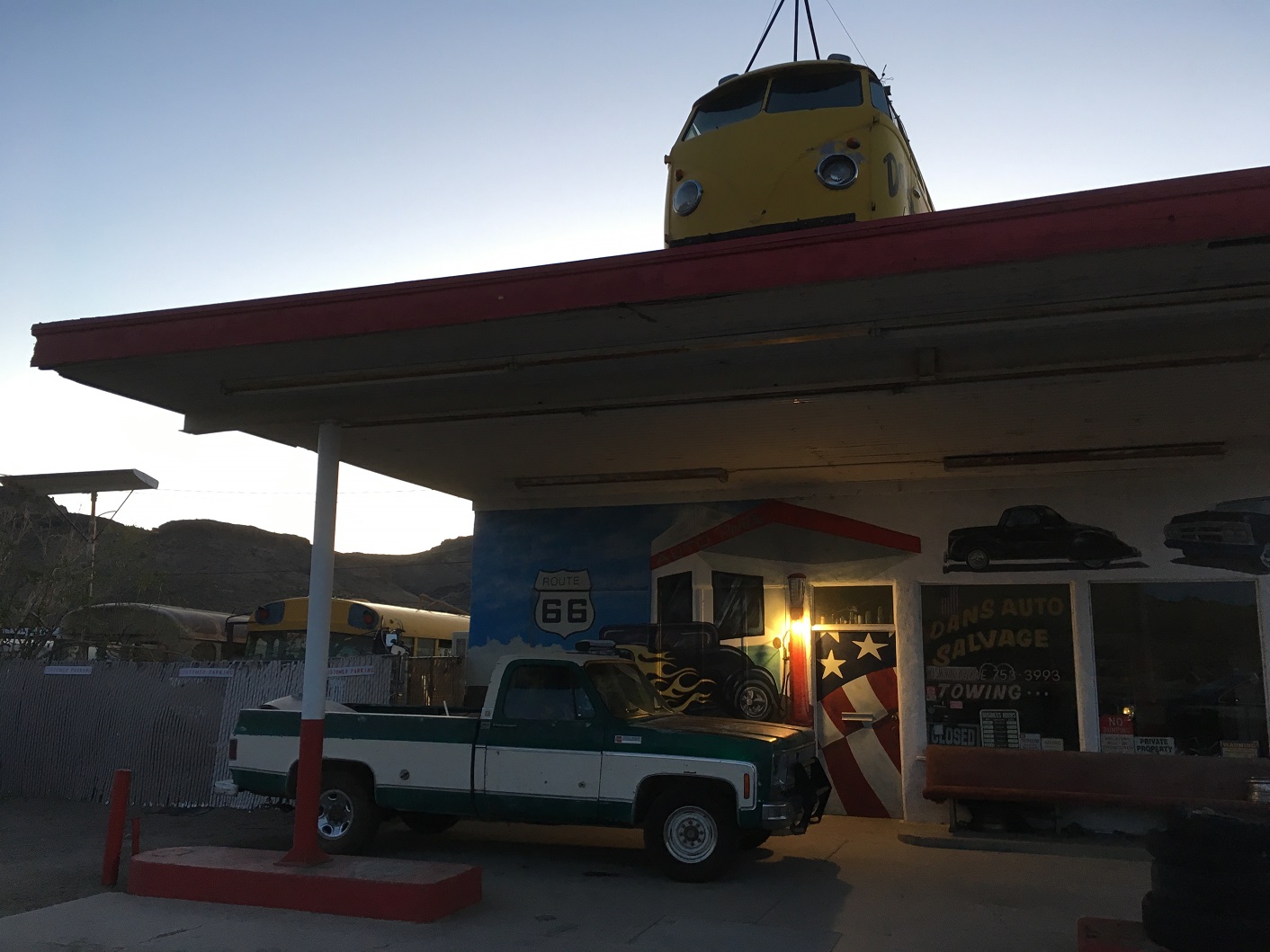 Und erste Route 66 Leckerbissen bei eisigem Wind aber schönster Sonnenaufgangsstimmung.