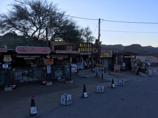 Oatman, zumindest morgens als wäre die Zeit stehen geblieben. Die Esel spazieren gemütlich durchs Kaff und nur die Tourishops zeigen, dass hier wohl im Sommer tagsüber mehr los ist.