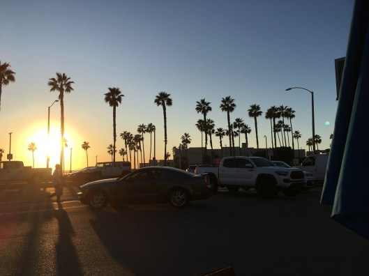 Huntington Beach direkt am Highway No 1, hinterm Haus brechen die Wellen des Pazifik an den grossen Strand.