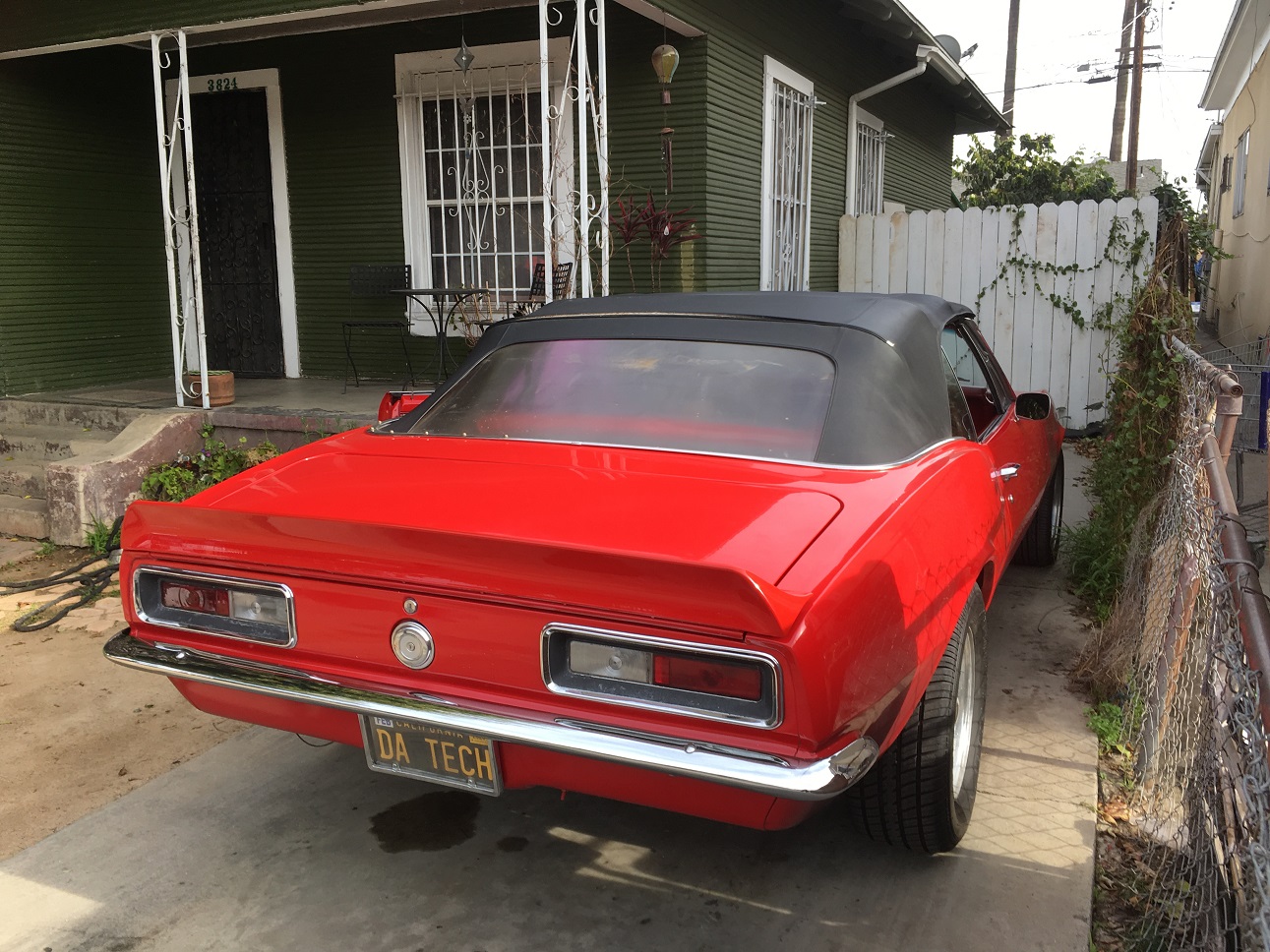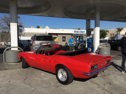 Voilà, unser Spielzeug für die nächsten Tage, ein 67er Camaro Convertible, dem ersten Baujahr des Camaros. Klar war der Wagen nicht im traumhaften Originallzustand, aber er bot für wenig Geld viel Fahrvergnügen und einen tollen Sound. Davor tanken wir zum letzten Mal unseren GMC voll.