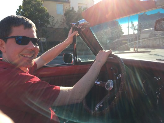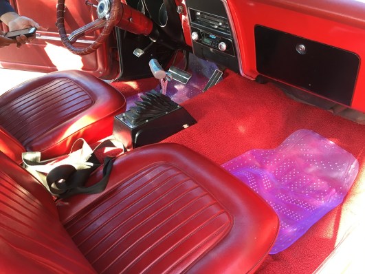 Das Automatikgetriebe nach D zu bringen brauchte Übung mit dem nachgerüsteten Hurst-Schaltknauf, das Öffnen des Daches ebenso. Aber das mindert den Spass keineswegs, der Motor brüllte wunderschön, so wie es bei uns niemals legal wäre.