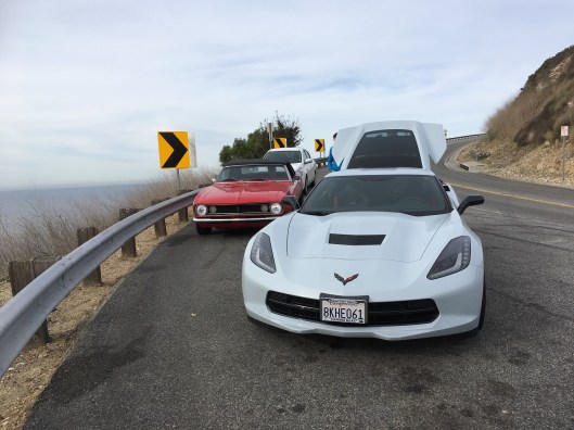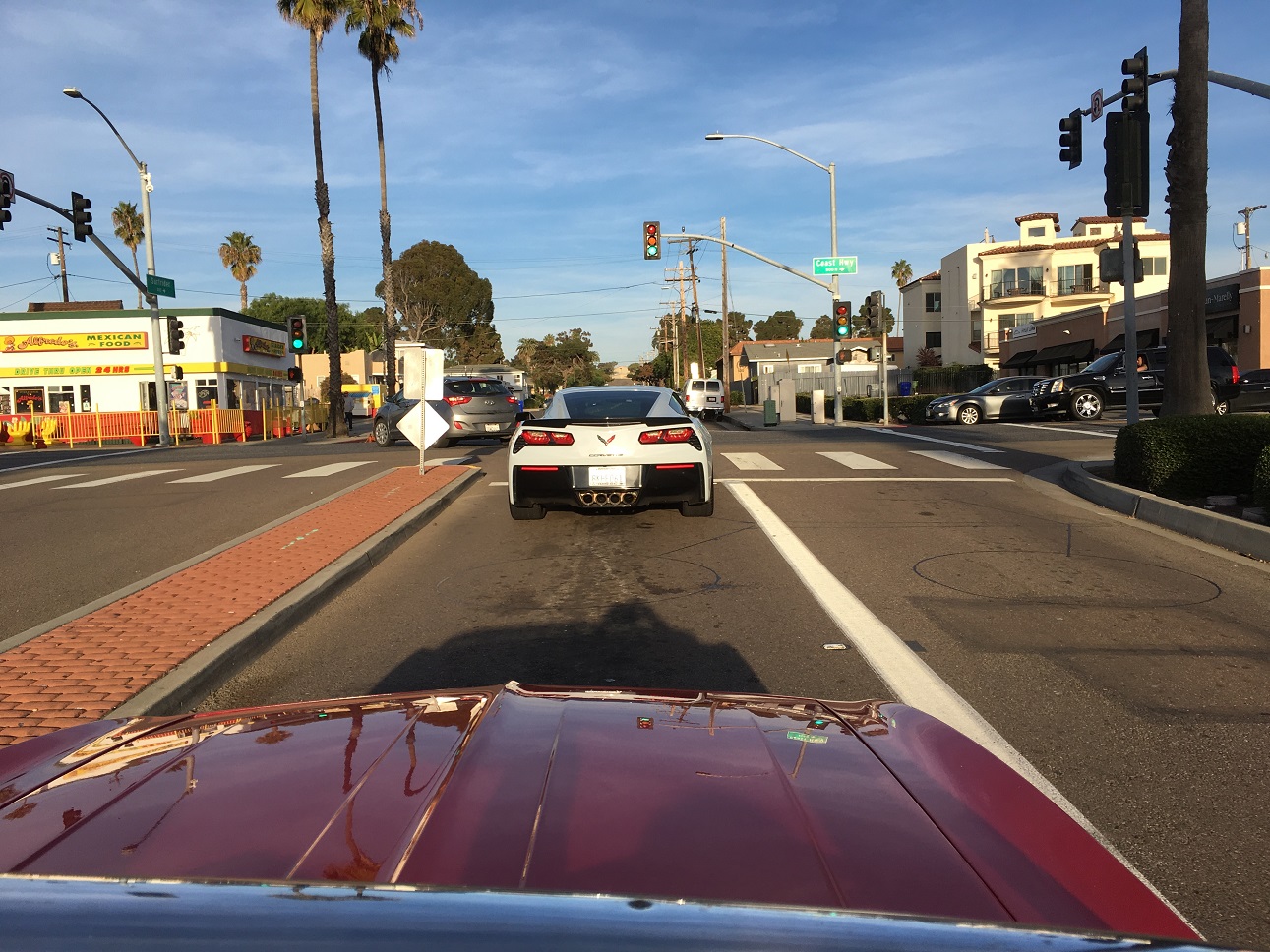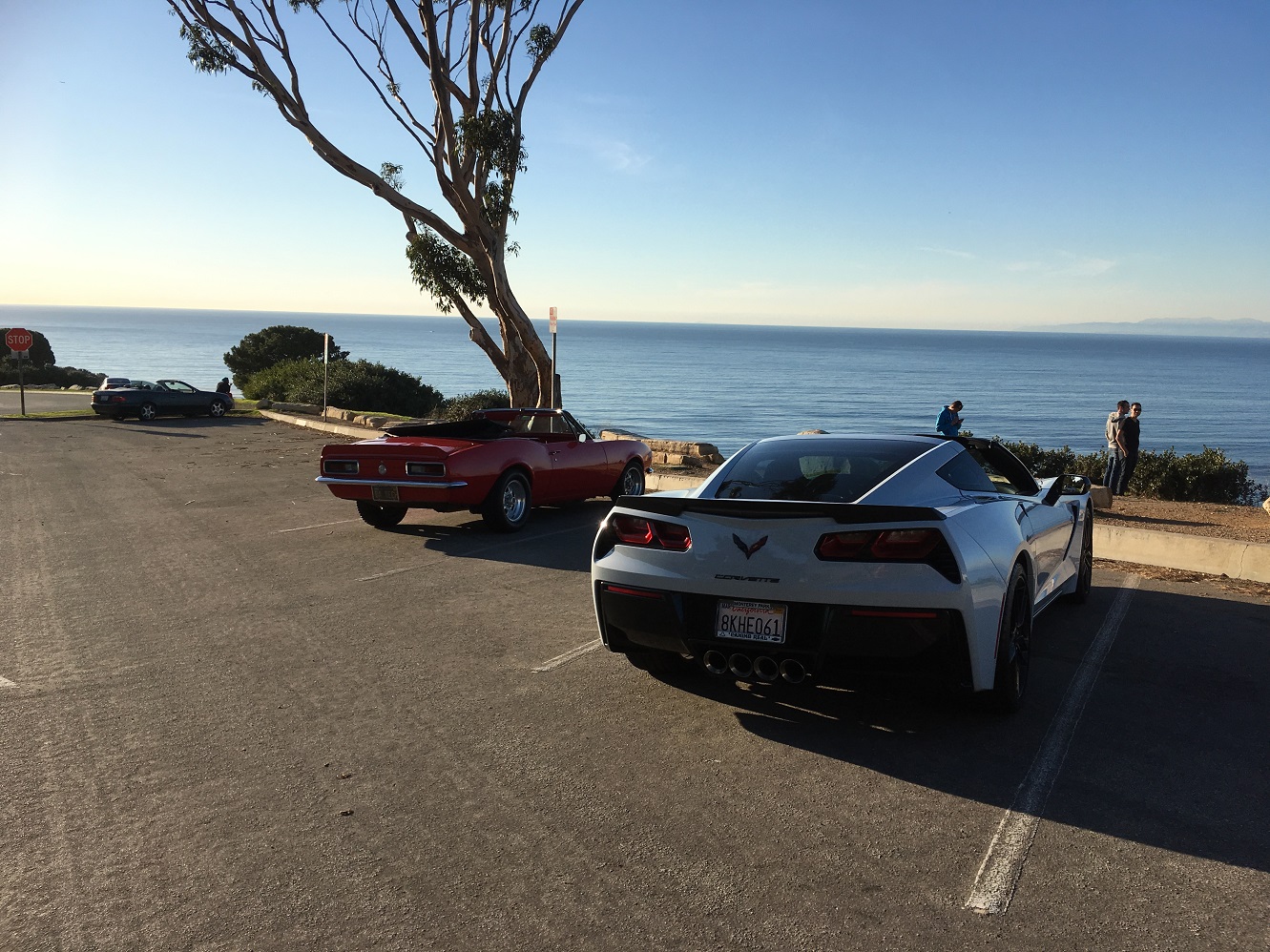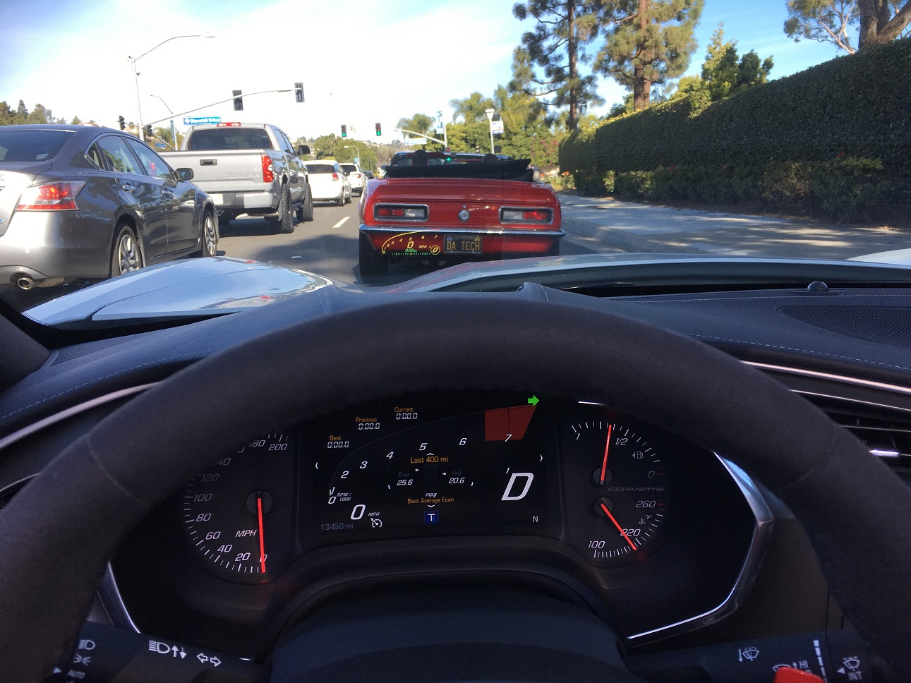 So jetzt aber einsteigen, wir fahren los auf unsere „south of LA“ Runde! Für mich heisst das Platz nehmen in der 2019er Corvette, nach dem 67er Camaro eine ganz andere Welt. Hier ist nichts zufällig, dieser Wagen hat eine für amerikanische Verhältnisse ungewohnte Perfektion. Klar ist es ein Neuwagen, aber einer der seit vielen Jahren die Sindelfinger Sportwagenschmiede im Bereich Preis/Leistung alt aussehen lässt, teilweise sogar auch in den nackten Zahlen und Vergleichstests. Ich sitze schlicht perfekt, diese Corvette ist kein reines Spassmobil, sie lässt Fahrer und Beifahrer auch sehr kommod von A nach B reisen ohne übertrieben hart zu sein. Vorne grummelt diskret ein klassischer V8 mit klassisch zwei Ventilen pro Zylinder mit 6.2 Litern Hubraum. Auch wenn das jetzt nach viel Verbrauch aussieht, GM hat die neue V8 Generation echt sparsam hingekriegt. Den kleinen Bruder hatten wir die Tage davor im GMC Yukon, dort mit 5.3 Litern Hubraum.
