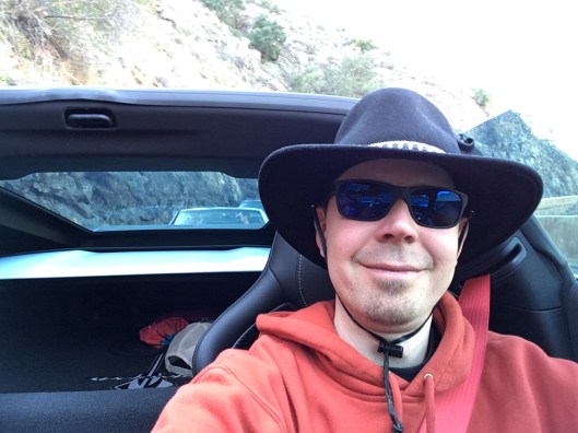 Der Kuhjungenhut ist übrigens durchaus praktisch, wenn man abends nicht mit roter Birne gesegnet sein will. Auch die Dezembersonne erwischt einem bei ganztägigen Cabrioausfahrten ganz ordentlich. 🙂