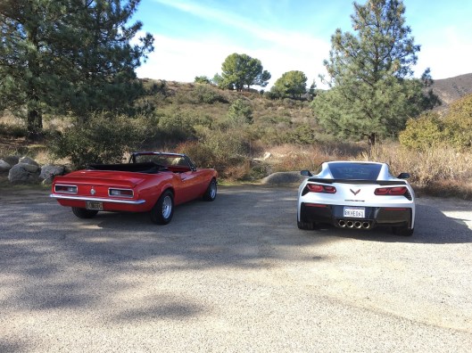 Jeder darf mal Corvette und Camaro fahren, zu viert mit zwei Autos wirds niemandem langweilig.