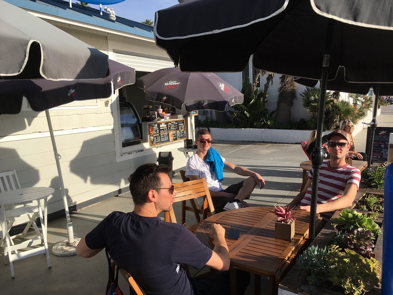 Lukas nimmt sich noch die Zeit mit mir nach Manhattan Beach zu fahren bis das Check-in öffnet. Was für eine Geste, hier ist in der Weihnachtszeit das Parkieren einfach gratis. Unvorstellbar bei uns 🙂