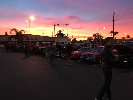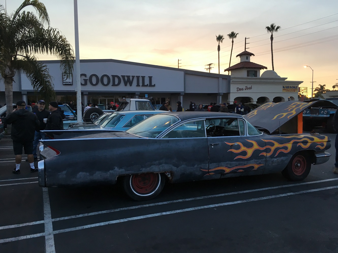 Für mich bricht der letzte Tag an, heute Abend bin ich bereits im Swiss Flieger nach Hause. Für Lukas geht es noch länger weiter, später kommt noch sein Vater und sie werden den Januar hier an der Sonne geniessen beim Betrachten schöner Autos. Silvan und Simon machen mit der Corvette noch eine schöne Kalifornienreise mit einem Besuch in Las Vegas. Heute gehen wir in aller Frühe erstmal zum Treffen „Donut Derelicts„, ein Treffen welches es ohne Unterbruch seit den 60er Jahren gibt. Später werden wir mit unseren Chevys und Lukas‘ Mietauto Richtung Flughafen fahren wo wir den Camaro abgeben und uns trennen werden. Lukas fährt danach wieder zurück nach Huntington Beach und die beiden Corvette-Jungs fahren nordwärts.