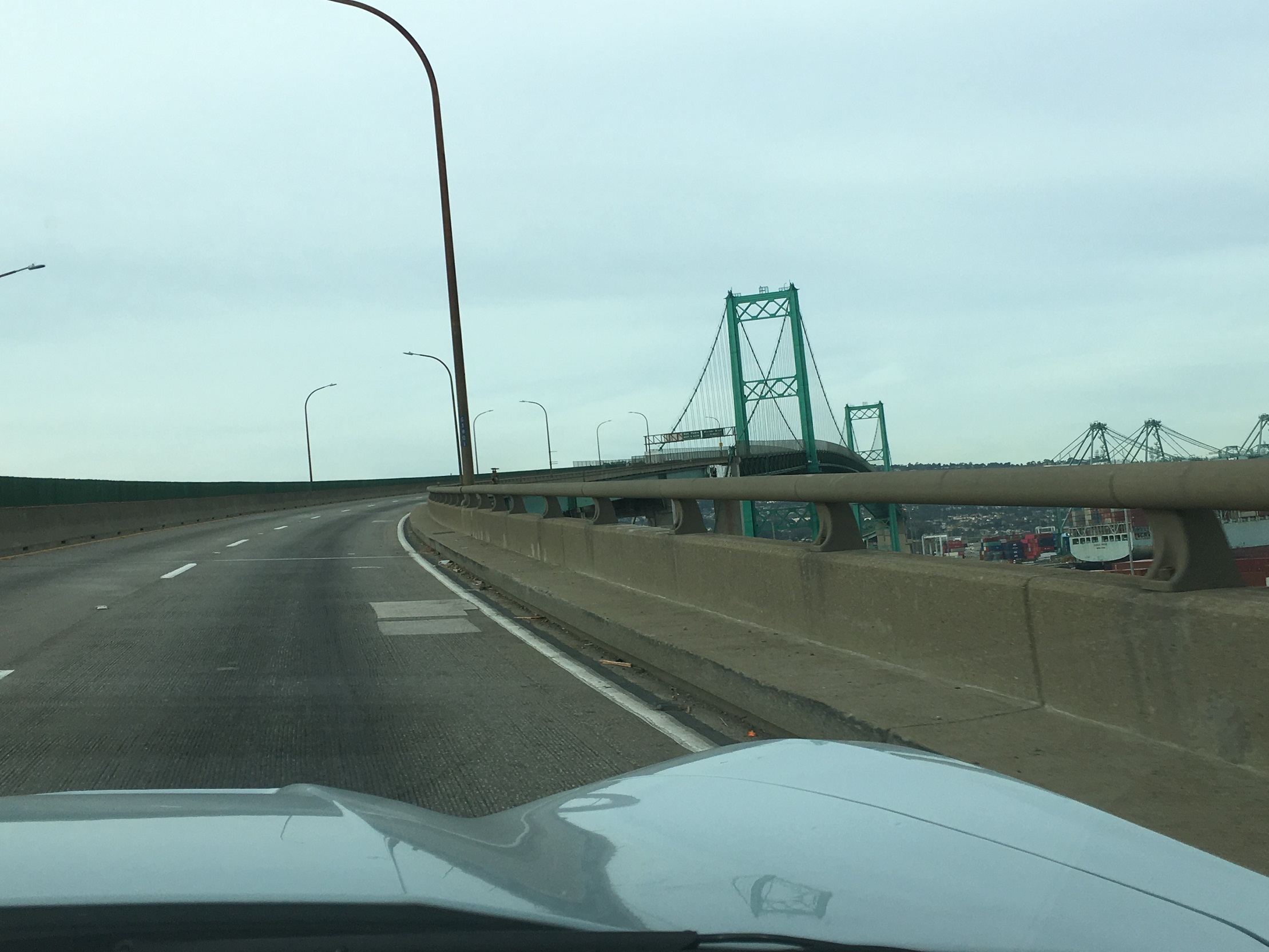 … von wo wir mit dieser grünen Brücke über die grosse Hafenanlage kommen Richtung Süden.