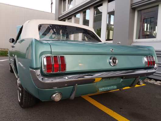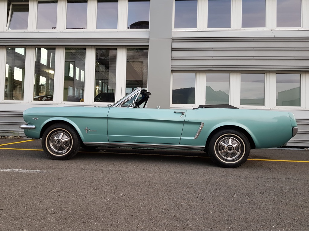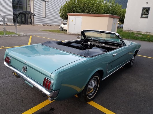 In der Farbe „Dynasty Green“ gab es nur knapp 1’000 Cabriolets, definitiv etwas anderes als die klassisch roten oder weissen Ponies. Auch die Handschaltung macht diesen Wagen zu einer Seltenheit. Sehr guter Zustand, ausser dem Radio funktioniert alles tadellos.