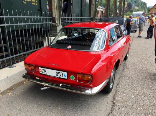 Kaum sind wir ausserorts unterwegs fällt mir ein weiterer Punkt auf, welcher oben genannte deutsche Produkte nie hatten, dieser Alfa ist selbst in der Juniorversion mit serienmässig 5 Gängen unterwegs. Das Fahrwerk fühlt sich vom Stande der Entwicklung mindestens 15 Jahre frischer an. Dieser Wagen war Ende der 60er für sportliche Zeitgenossen auf jeden Fall eine gute Wahl und gegenüber einem BMW konkurrenzfähig. Erst später verlor Alfa an Qualität und sackte gegenüber München ab. Diese aber verspielen nun einen Teil ihres Vorteils, mit einem Designexzess, während Alfa sich heute gezielt an Stilelementen von früher orientiert. Alfa ist und bleibt wie auch beim Stelvio-Test geschrieben keine Marke für Jedermann, es ist der starke Espresso für Geniesser. Nicht jeder mag ihn so stark, die Fans aber berauschen sich daran.