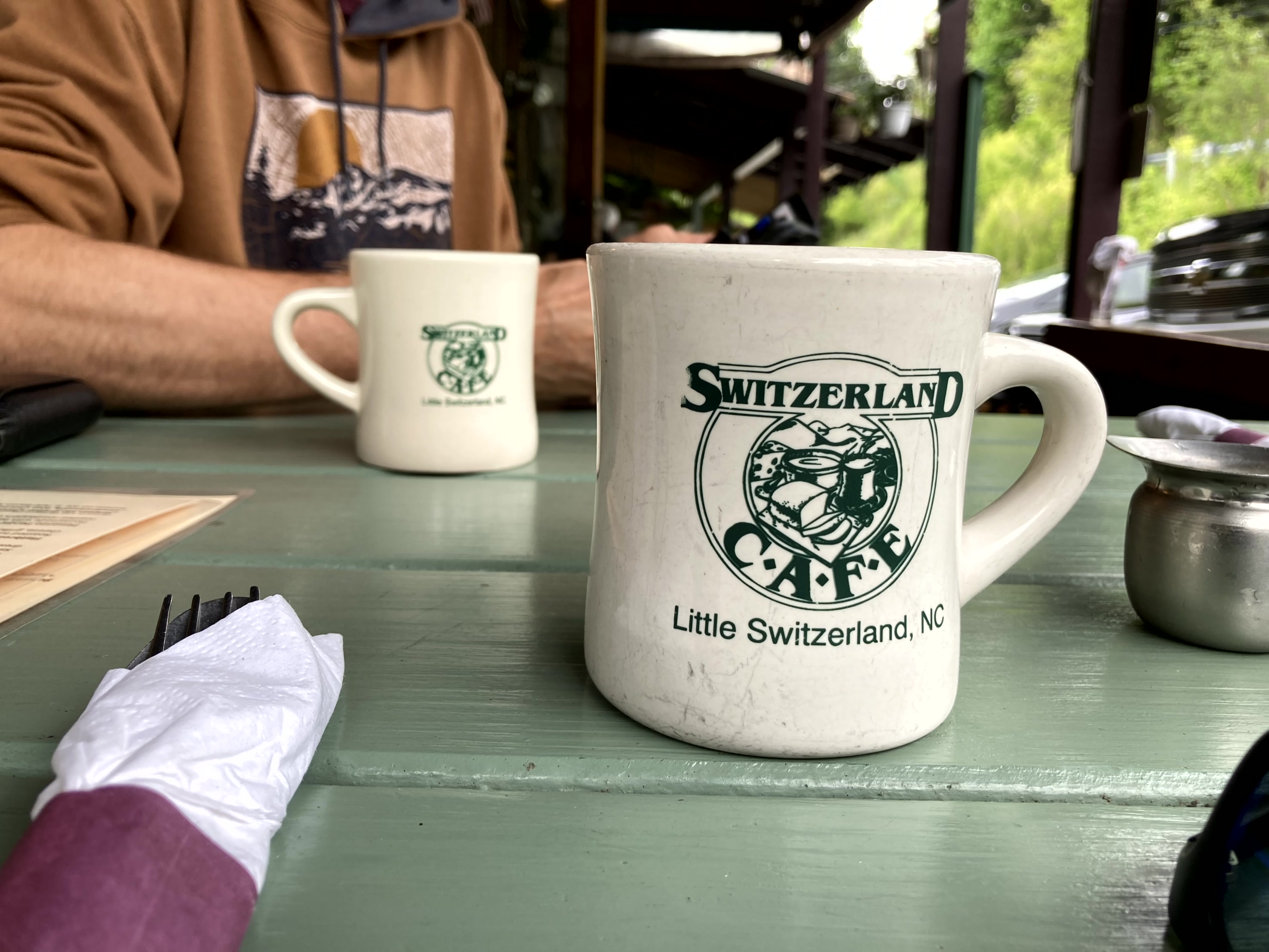 Little Switzerland NC, als wir den Namen im Rand McNally entdeckten war klar, da müssen die Schweizer hin. Naja… der Ort wurde um 1910 so benannt, weil es sich verkaufsfördern anhörte. 🙂 Nichtsdestotrotz hängen heute Schweizer Fahnen und wir Schweizer beehren den wirklich schön gelegenen Ort immerhin für Kuchen und Kaffee.